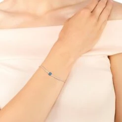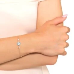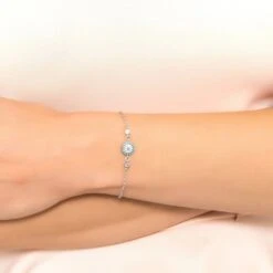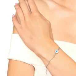 Latelita Evil Eye Round Mother Of Pearl Gemstone Bracelet Silver