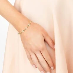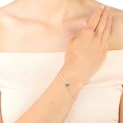 Latelita Evil Eye Round Mother Of Pearl Gemstone Bracelet Gold