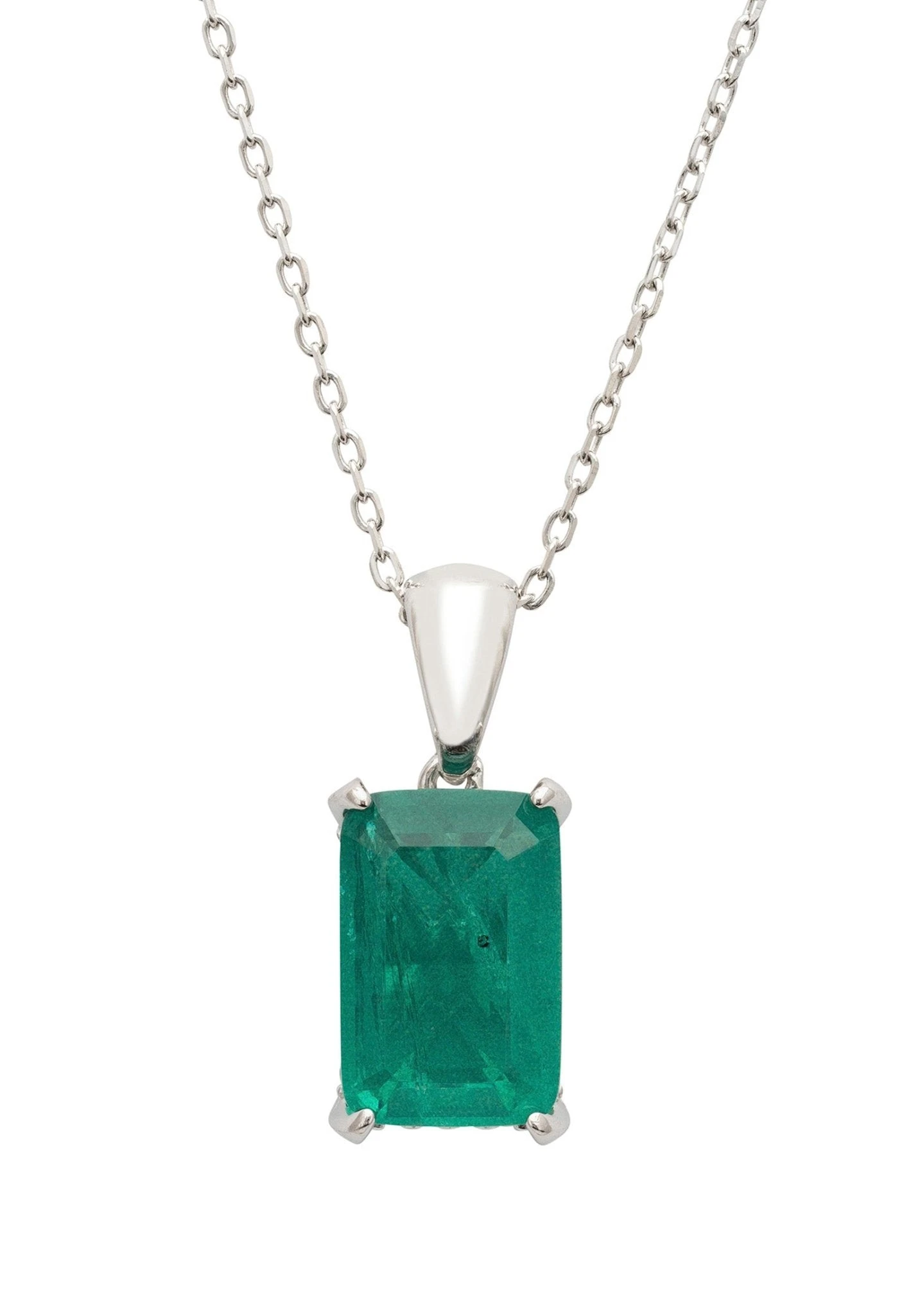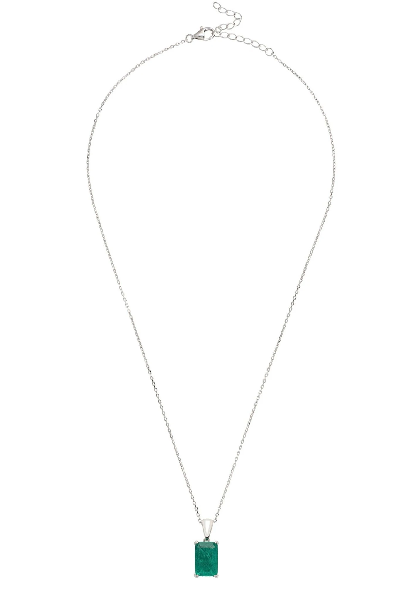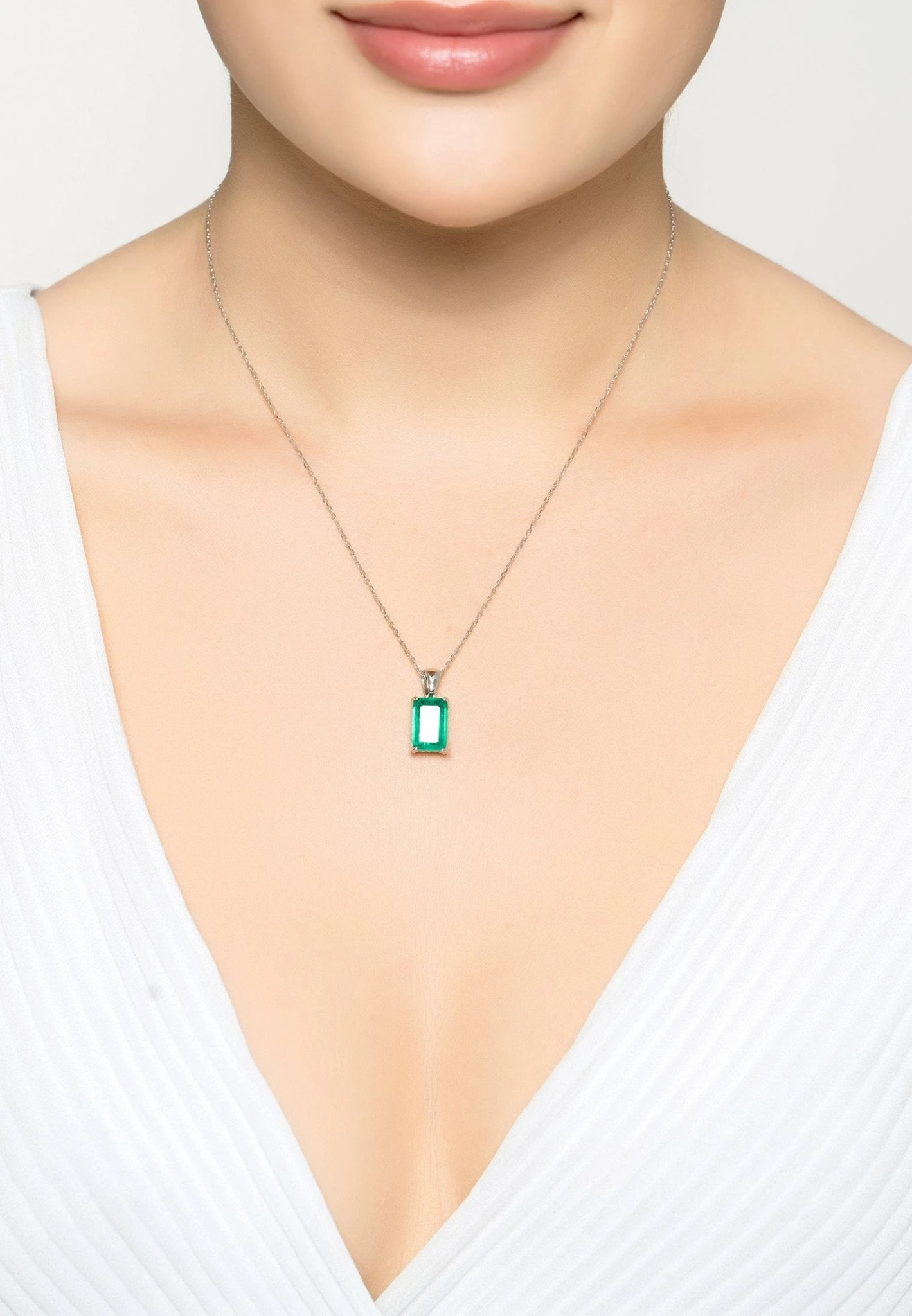 Introducing the Alexandra Rectangle Gemstone Necklace Silver Colombian Emerald! This necklace is the perfect piece for a timeless statement. Handcrafted with 925 sterling silver, it features a rectangular shaped lab-grown Emerald with sparkling simulated diamonds adorning the sides and back in an open design setting measuring 1.2cm x 0.8cm.