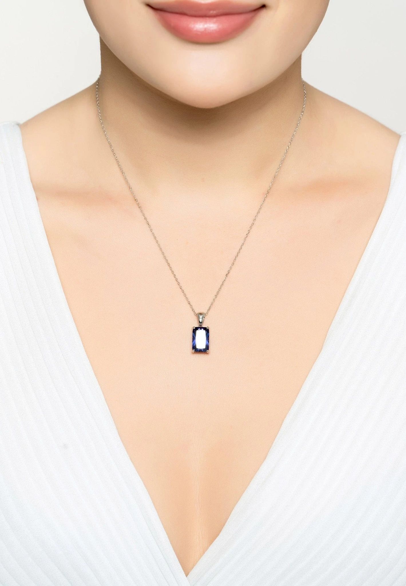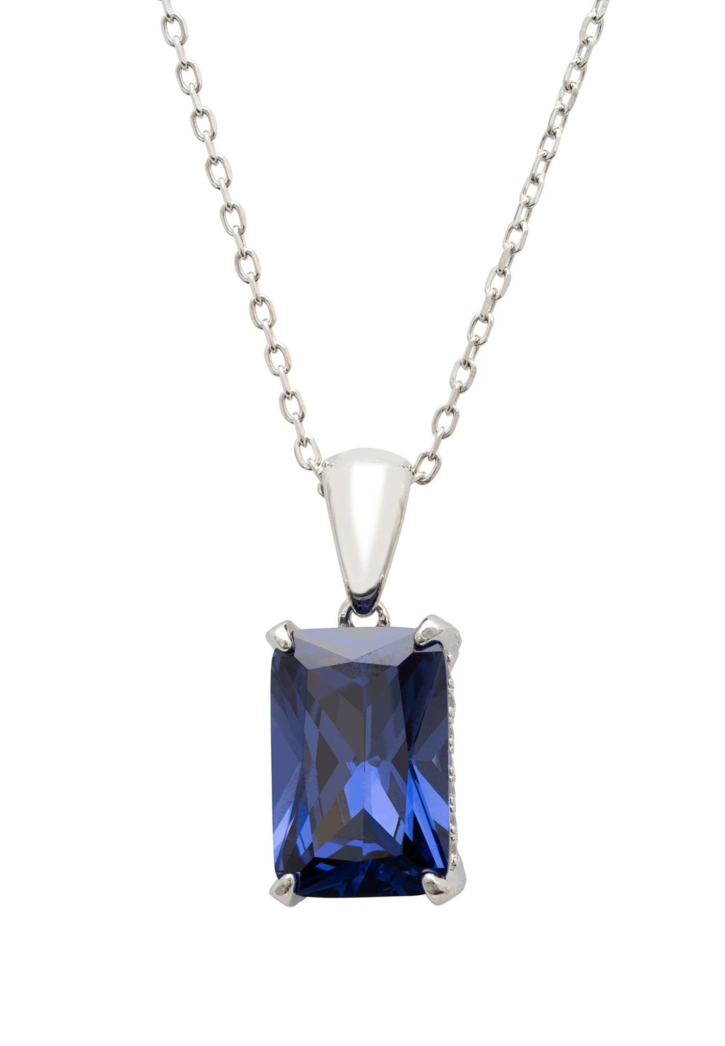 Say hello to the Alexandra Rectangle Gemstone Necklace Silver! This exquisite and elegant handcrafted piece is a show-stopper, no matter what neckline you’re wearing. Crafted with 925 sterling silver, this item will easily become a favourite in your collection of jewellery. Featuring a beautiful rectangular-shaped lab-grown Tanzanite set in a stunning open design silver setting that is adorned on the sides and back with sparkling simulated diamonds, this necklace is truly remarkable.