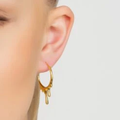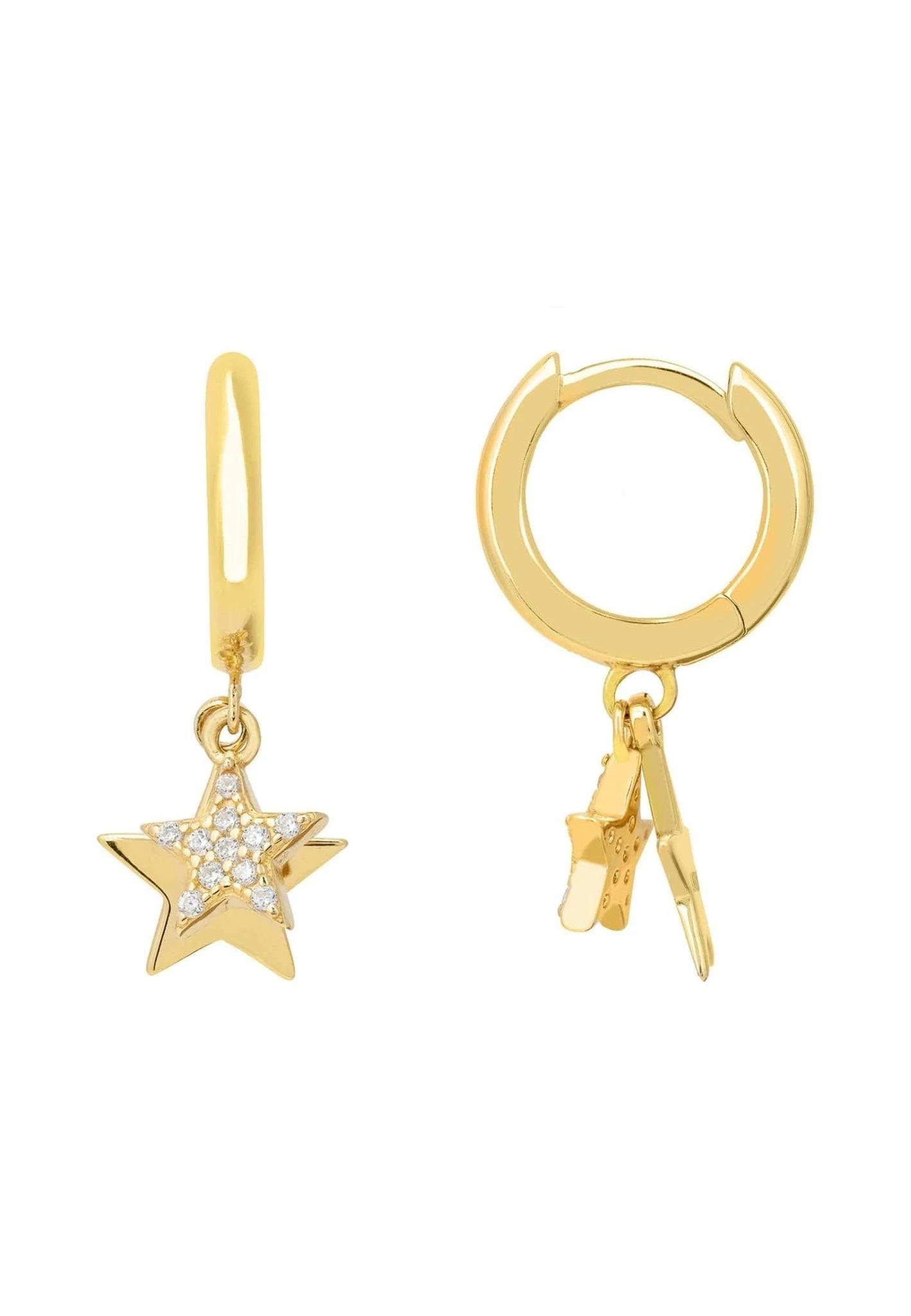 Pretty and petite, these hoop earrings have two small star motifs that hang from the base of the hoop. One set with white zirconia and the other in a highly polished metallic finish. These pretty hoops are hinged for ease of application and hug the earlobe for an elegant, understated aesthetic making them perfect for those who covet delicate jewellery with added sparkle.