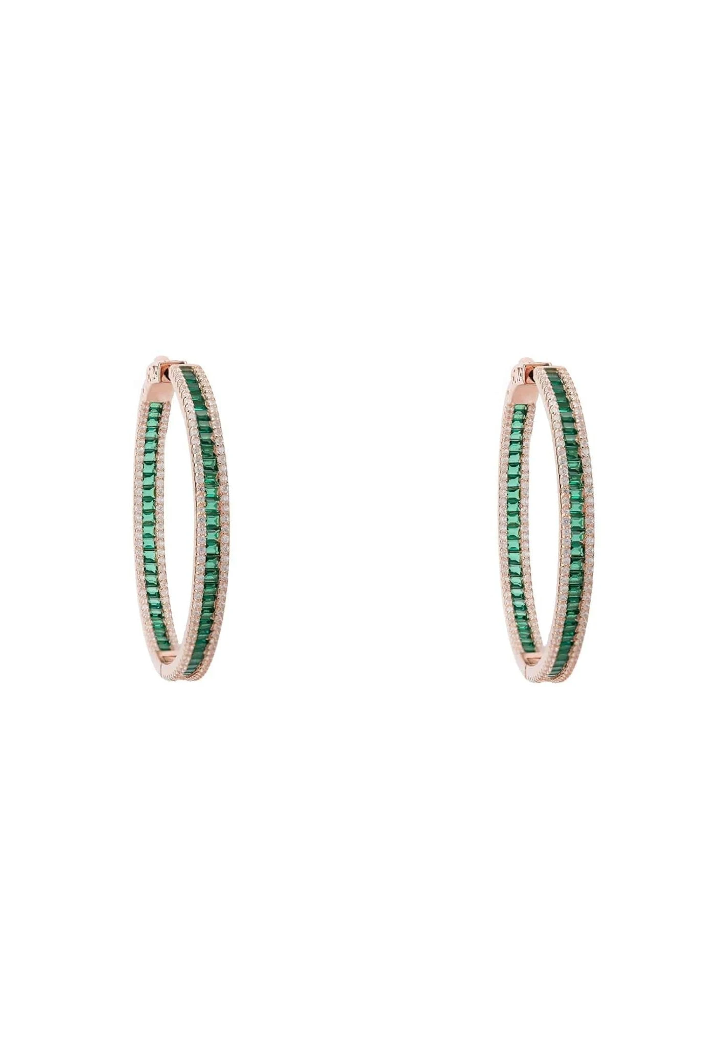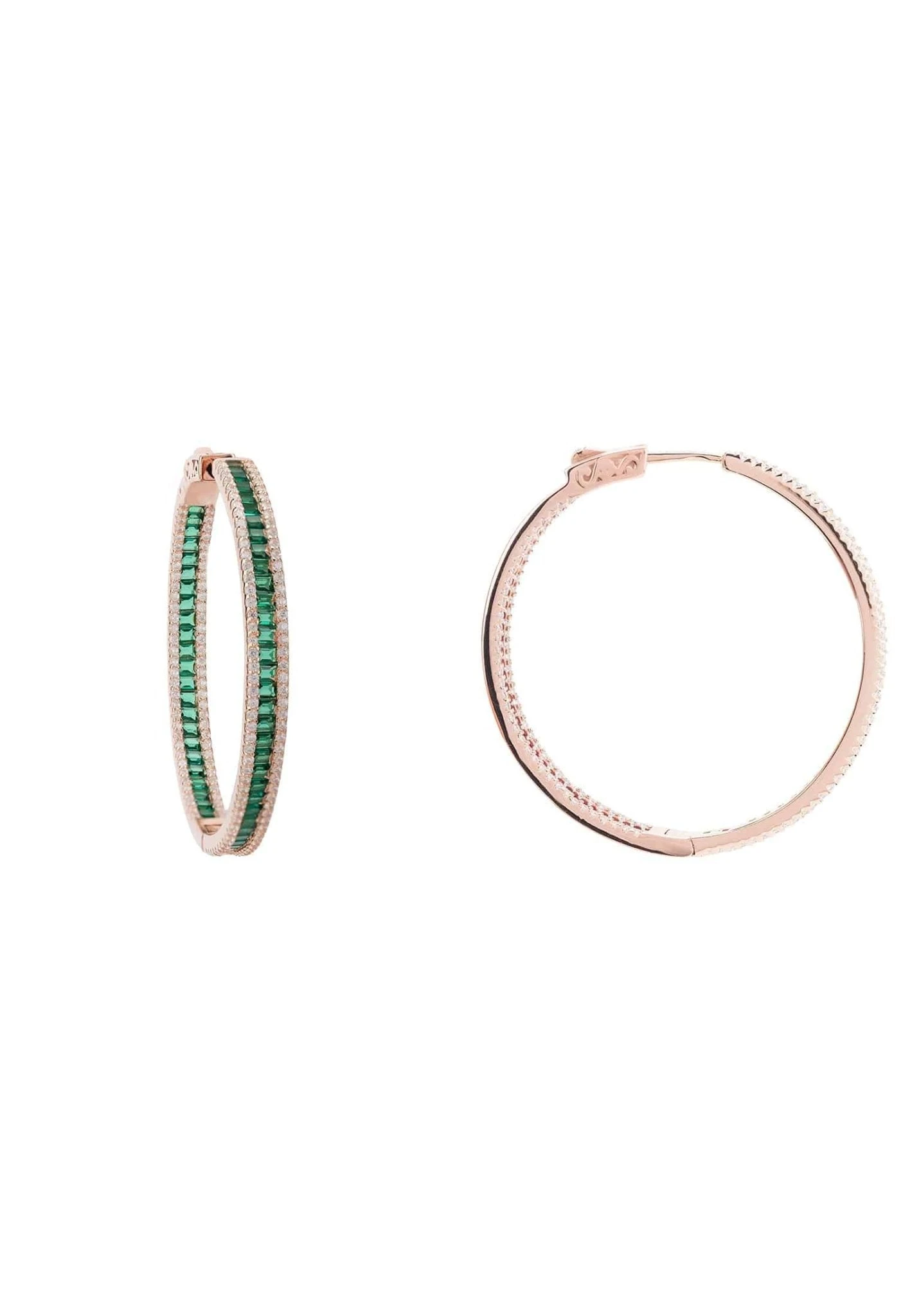 TheseĀ beautiful baguette large hoop earrings are stylishly simple with added sparkle. A block colour of baguette cut zircon adorn the circumference of this stunning hoop, edged onĀ either side with sparkling white zircons for even more glitz and glam.