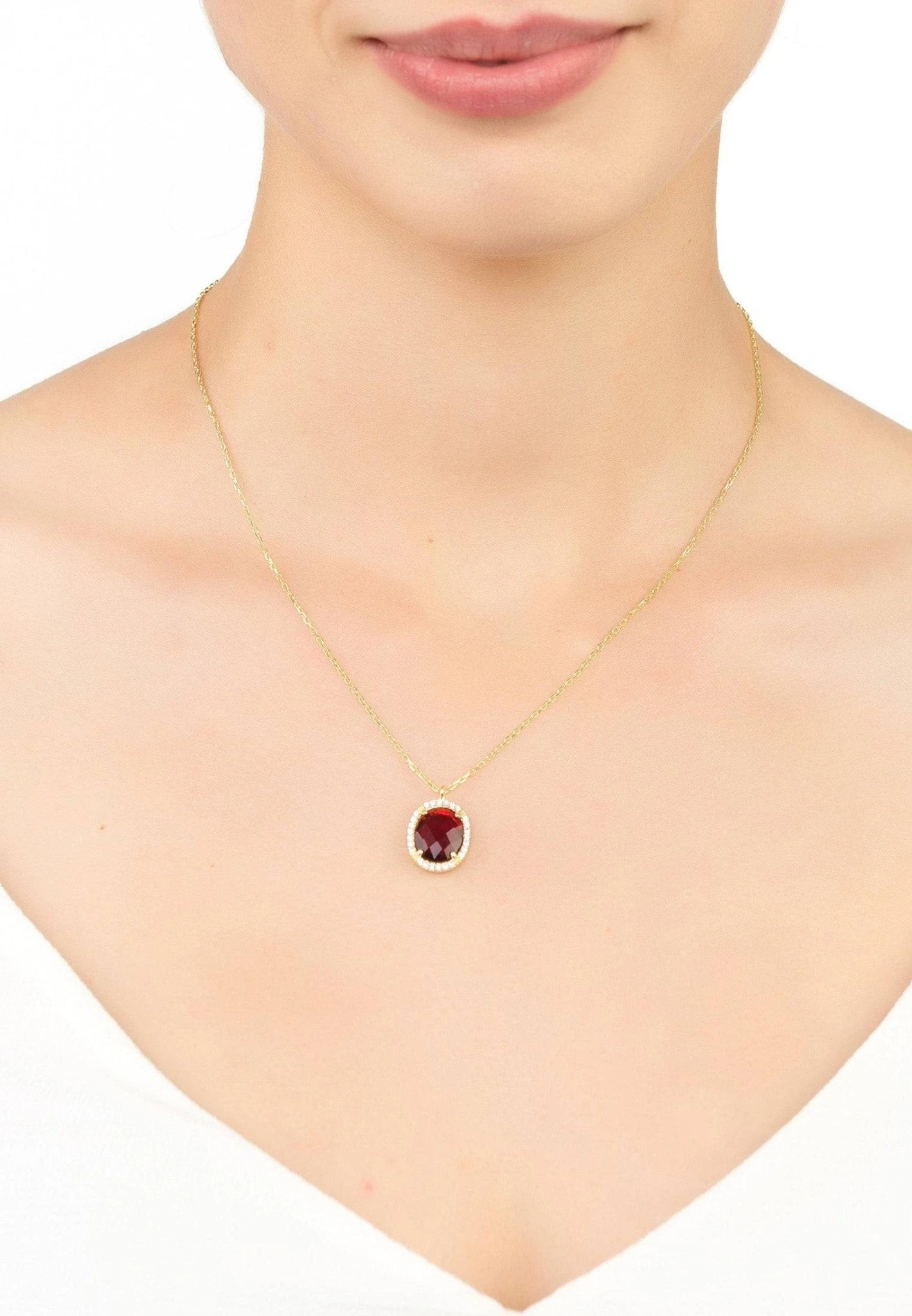 This gorgeous piece made from 925 sterling silver dipped in 22ct gold, features a beautiful oval gemstone set in an intricate gold setting and surrounded with Cubic Zirconia detailing, which catches the light and sparkles beautifully. The necklace is also adjustable in length, 40-45cm with lobster clasp, meaning you can find the perfect fit for any neckline and weighs 5 grams.