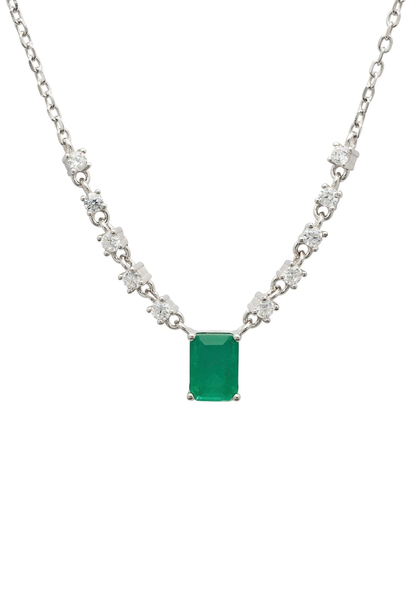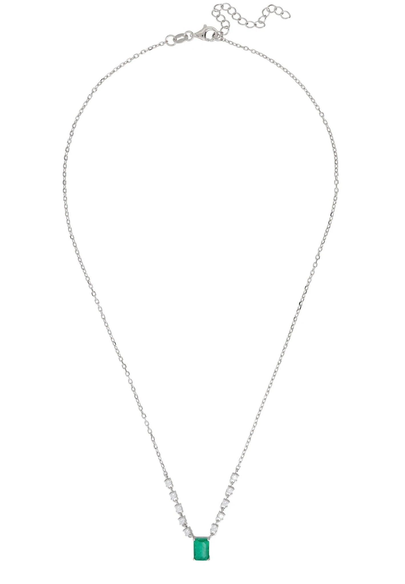 This stunning gemstone pendant necklace is crafted with care and attention to detail, the small rectangular lab-created Emerald is suspended from a delicate chain which features cubic zirconia decoration along the front aspect of this necklace. Perfect as a fashion statement or simply to add subtle sparkle to every day looks, this gorgeous necklace will bring you years of joy thanks to its durable 925 sterling silver construction.