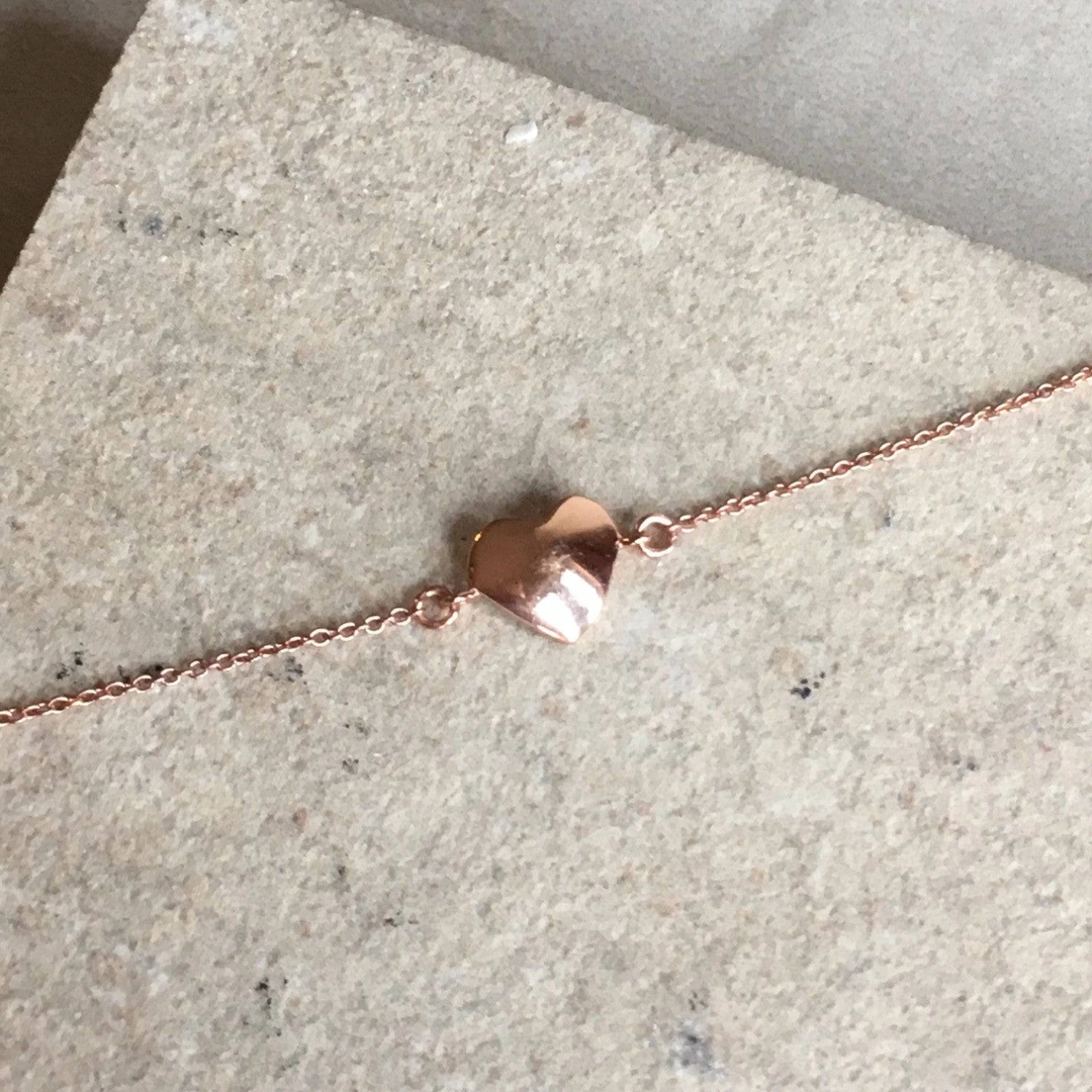 Introducing the Cosmic Heart Bracelet – a beautiful and understated piece of jewellery that is perfect for those who prefer delicate designs. This bracelet features a hand hammered convex heart motif, on a fine chain with lobster clasp fastening. The lobster clasp fastening makes it easy to put on and take off, and the 18cm length is perfect for everyday wear. The heart motif measures 1cm x 0.8cm.