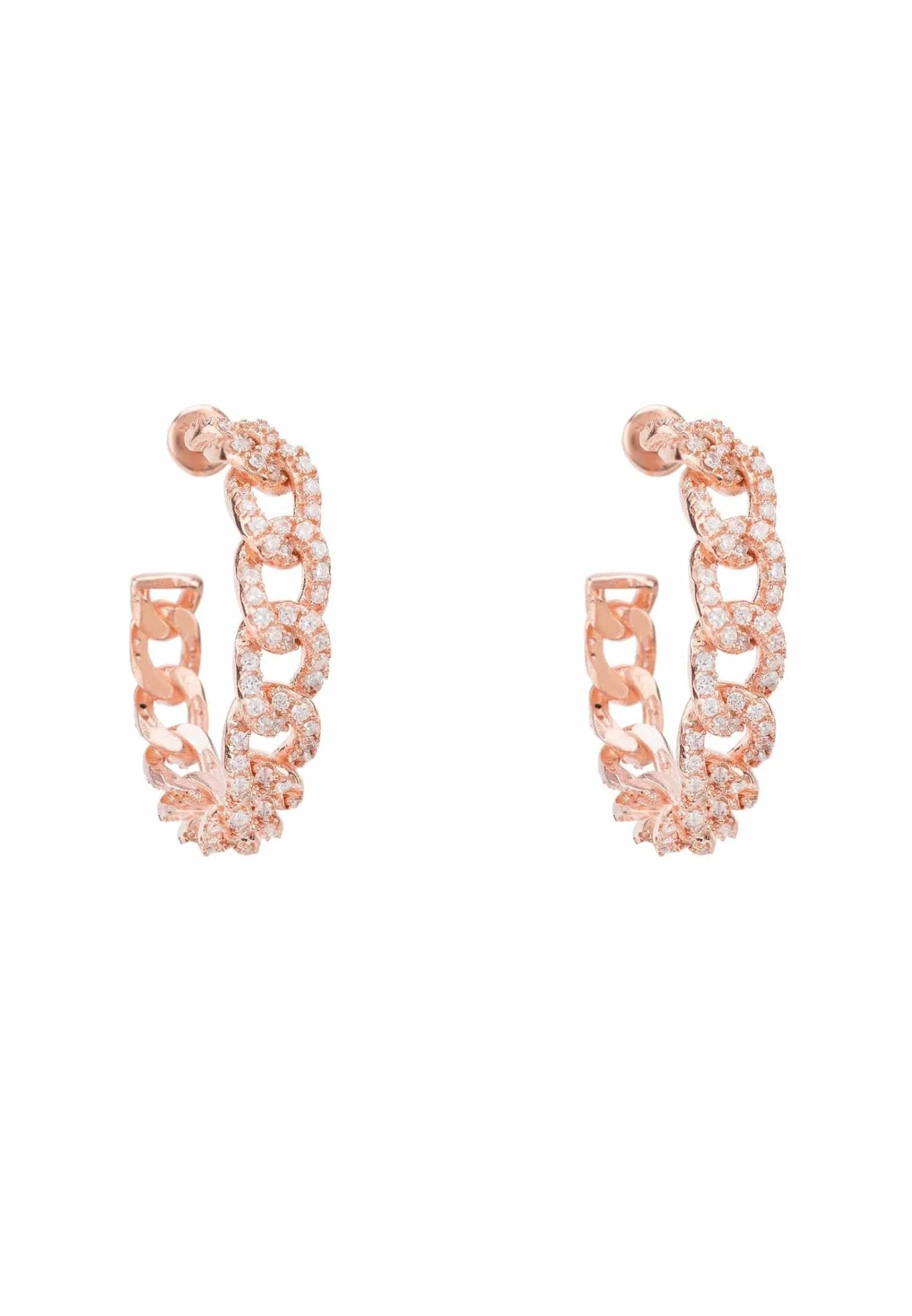 These beautiful curb chain hoop earrings are stylishly simple with added sparkle. Each link of the curb chain hoop earrings is enhanced with cubic zirconia.