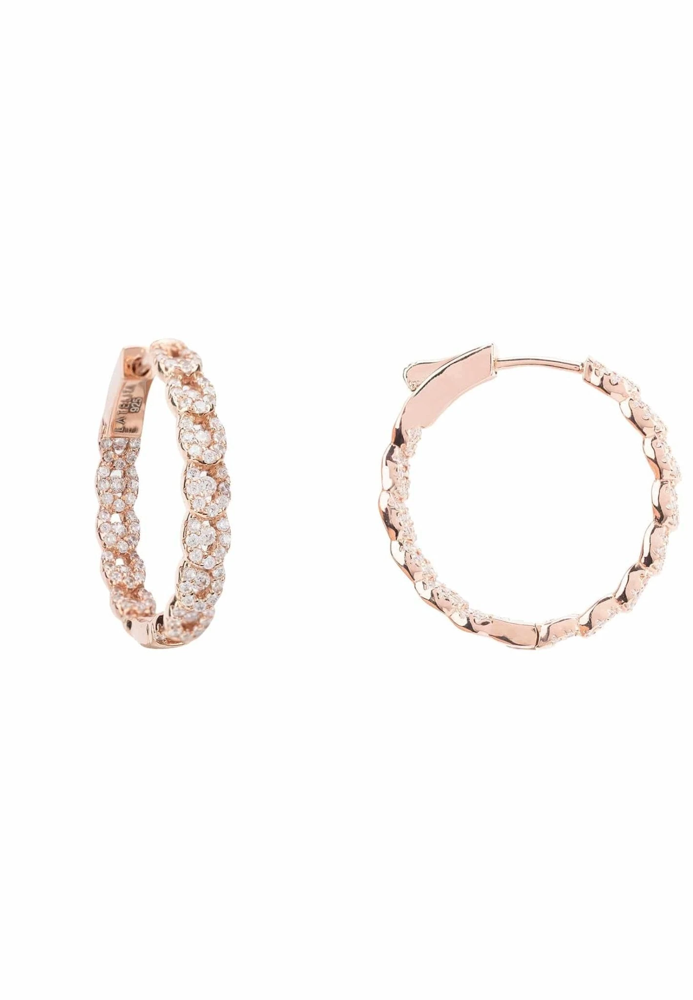 Designed to look like the links of a chain, the duchess hoop earrings are adorned with sparkling zircons that outline each link. For added sparkle another zircon sits at each links centre. The clever design of this hoop earring has placed the adornment on the inner edge at the back of the hoop so that when observing these earrings face on you can see all the decoration.