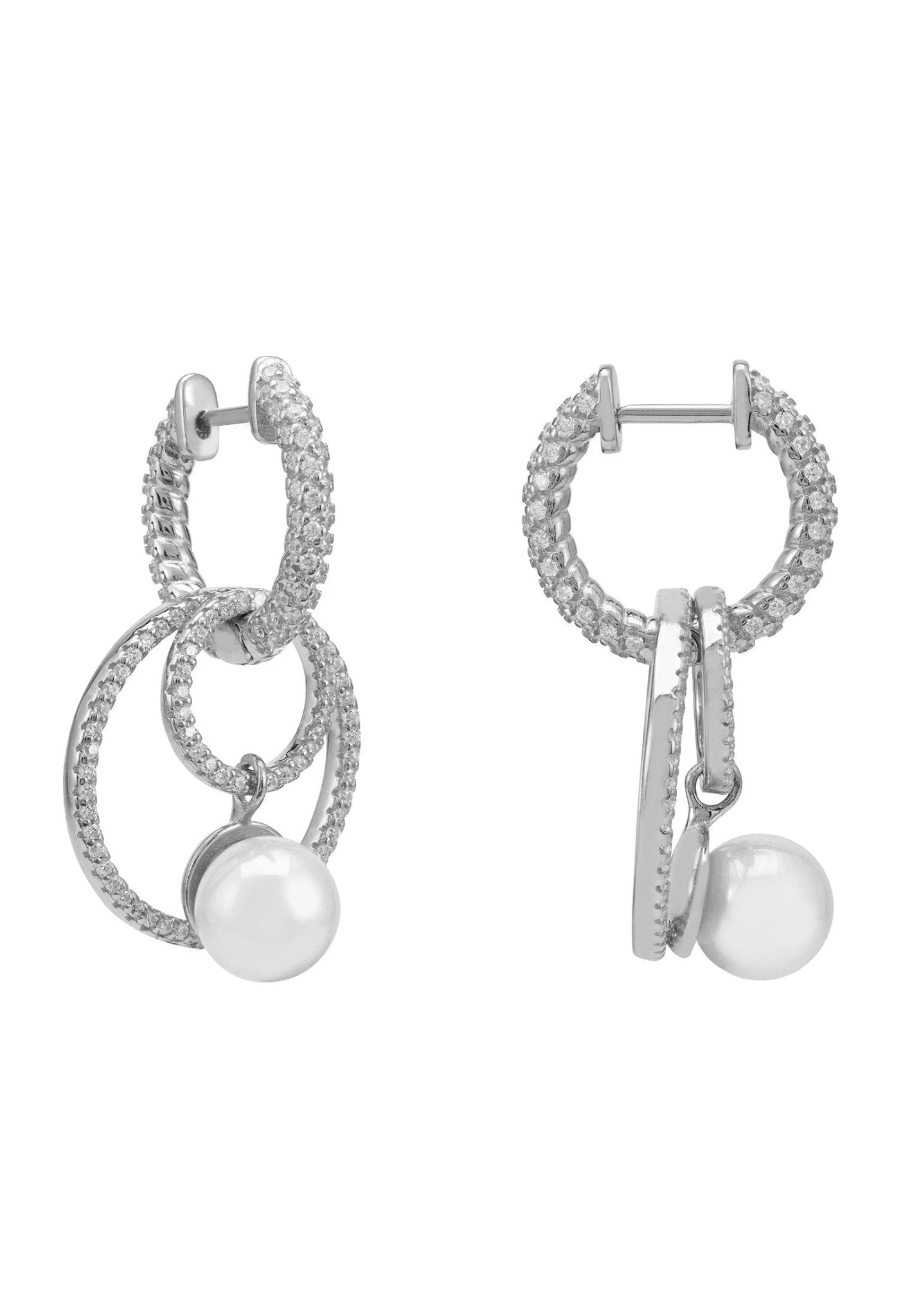 The exquisite Eternal Circles Pearl Earrings are perfect for anyone seeking a chic and glamorous look. These earrings are crafted with 925 sterling silver and adorned with cubic zirconia, giving a radiant finish.