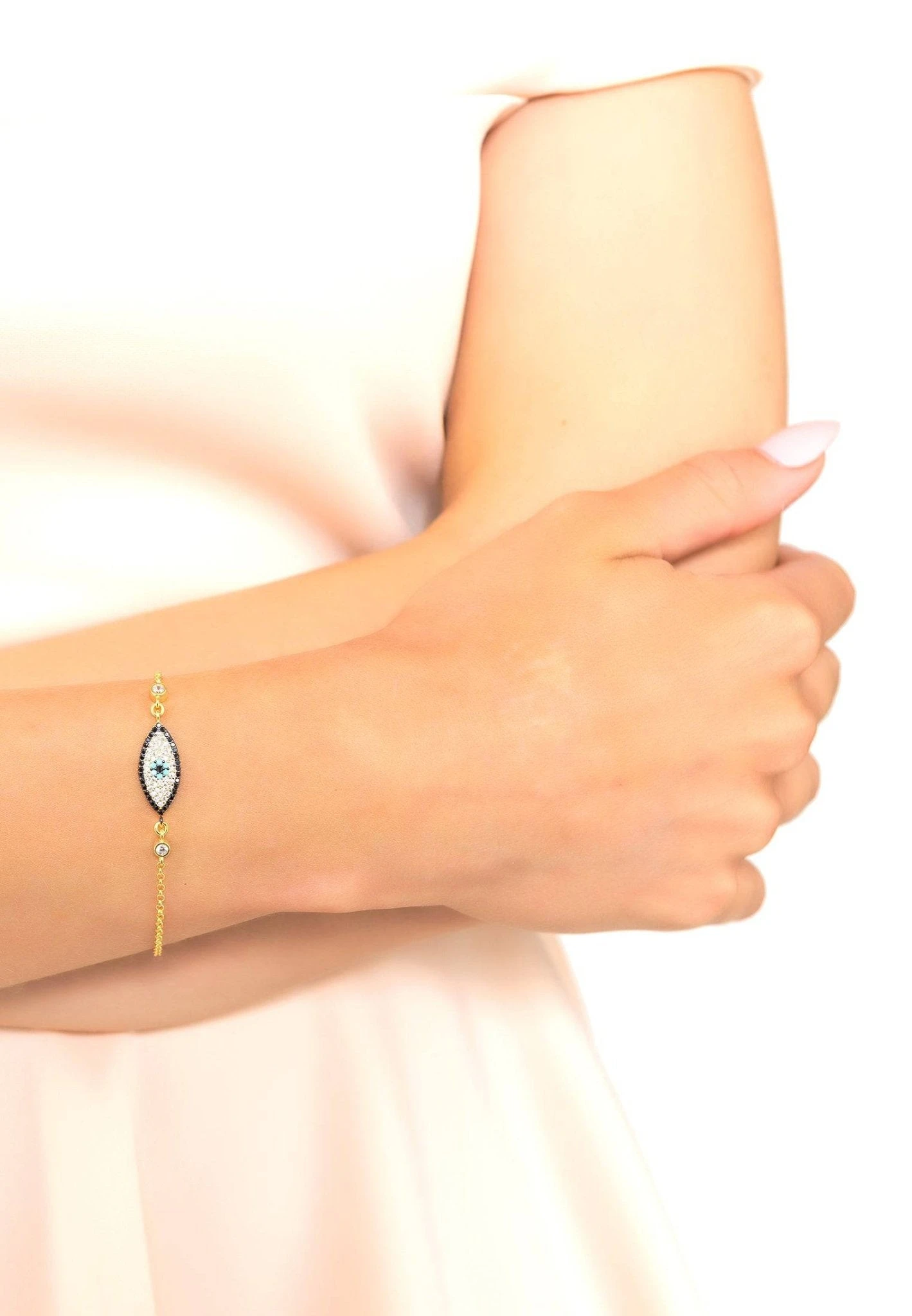 This petite evil eye elliptical bracelet is perfect for those who love delicate jewellery.