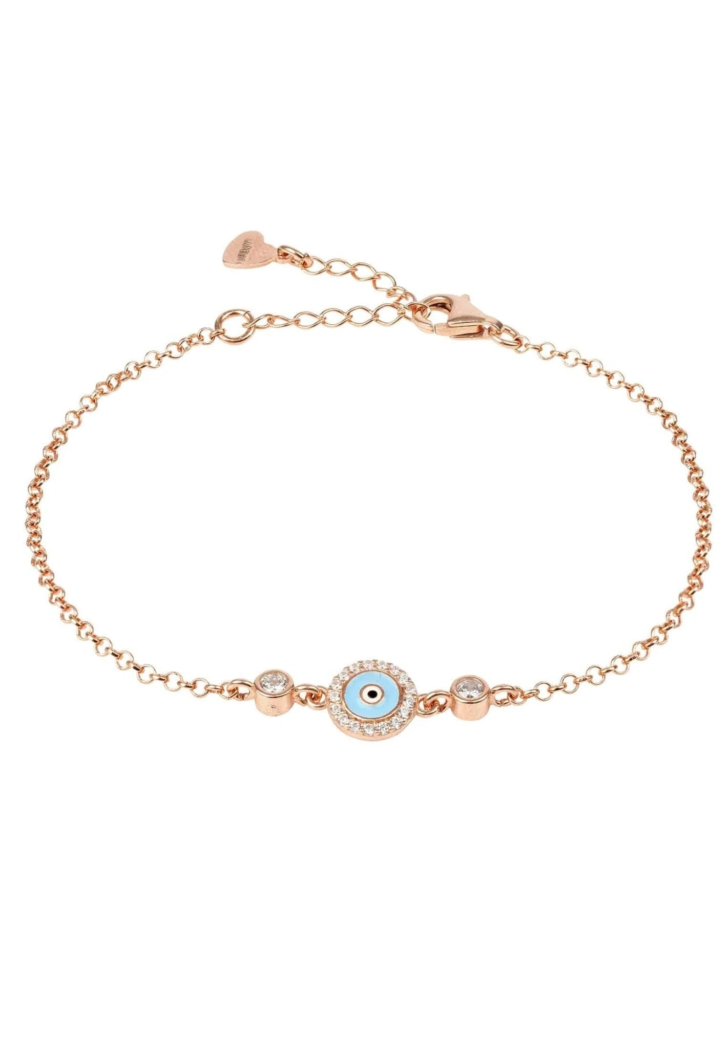 Introducing the Evil Eye Enamel Light Blue Bracelet from Latelita London! You’ll love adding this eye-catching piece to your jewellery collection. This stylish yet simple bracelet is handcrafted with rosegold plated 925 sterling silver, zircons and enamel. A light blue circle of enamel with evil eye is surrounded by sparkling white zirconia, then framed with a single zircon on either side, making this the perfect accent for this chic look.