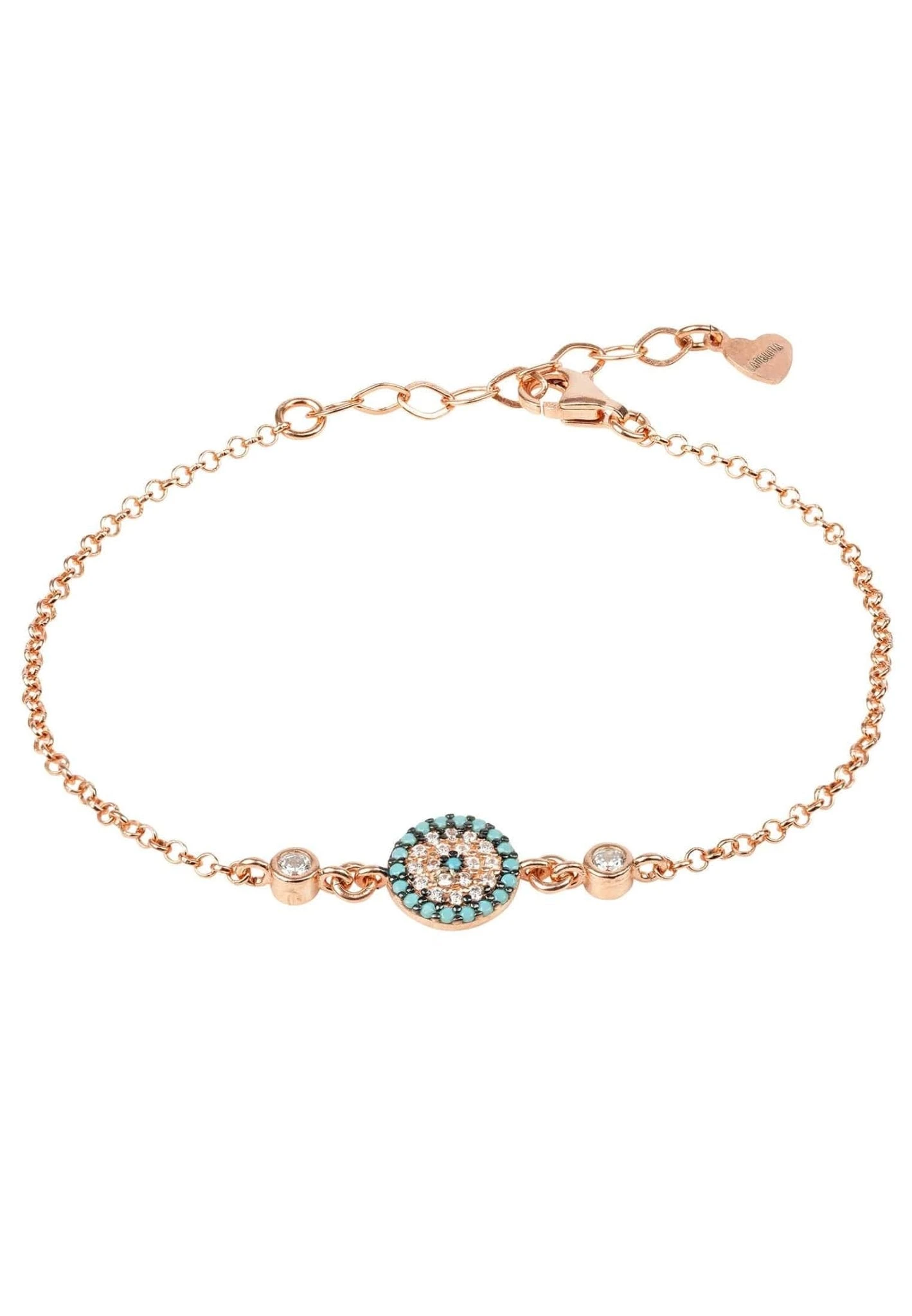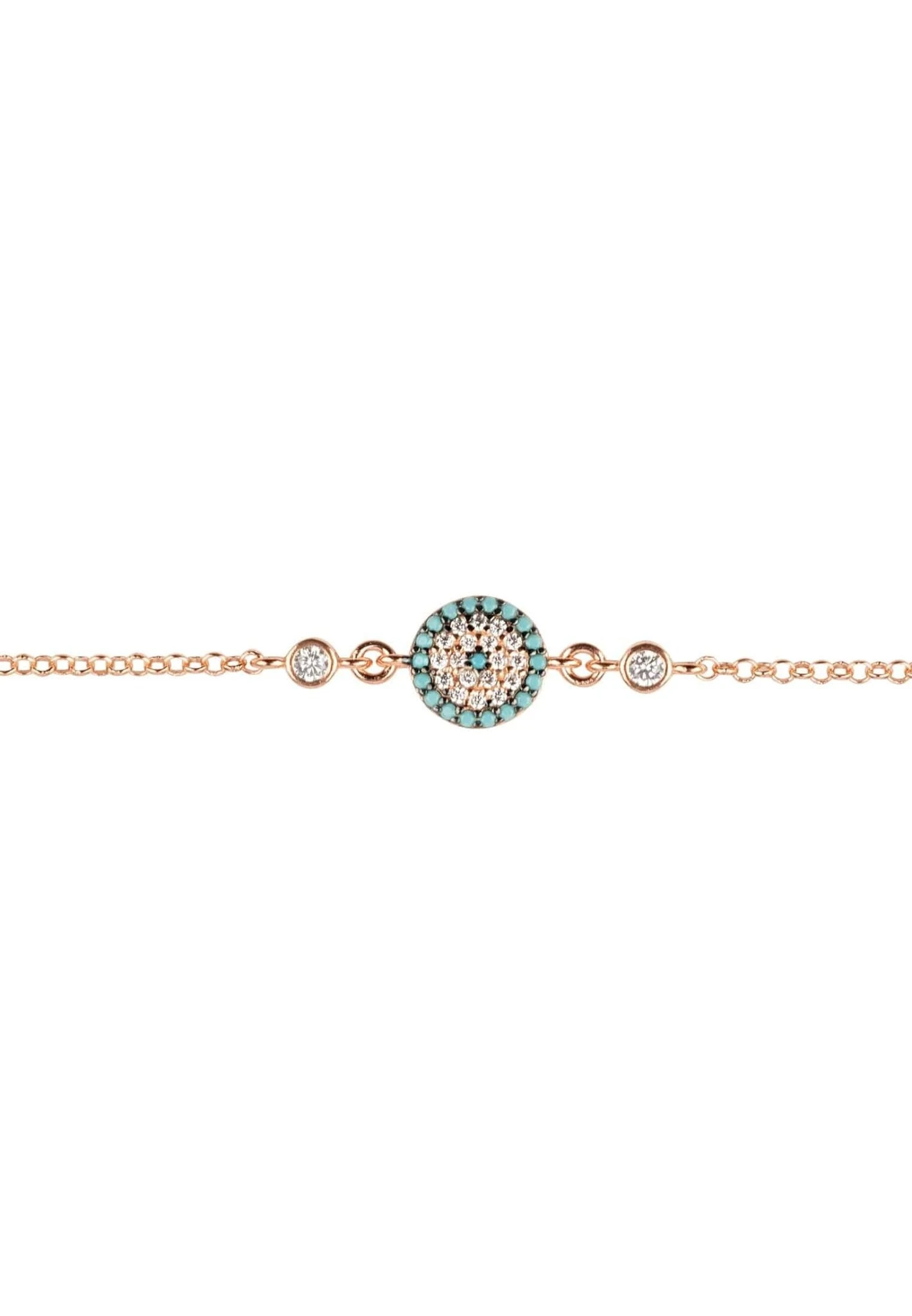 Handcrafted in sterling silver, each bracelet is adorned using Latelita London multifaceted white and turquoise zircons, framed either side of the evil eye motif with a single, larger white zircon to provide dazzling sparkle from day to night.