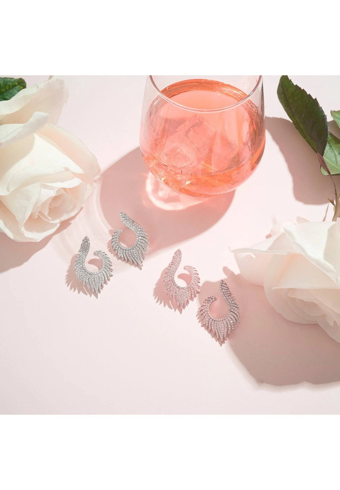 These beautiful Flame Hoop Earrings will add a touch of class to your wardrobe. They’re handcrafted from the finest 925 sterling silver, with an intricate flame-inspired motif decorated with our trademark cubic zirconia that really make an impact as they catch the light.
