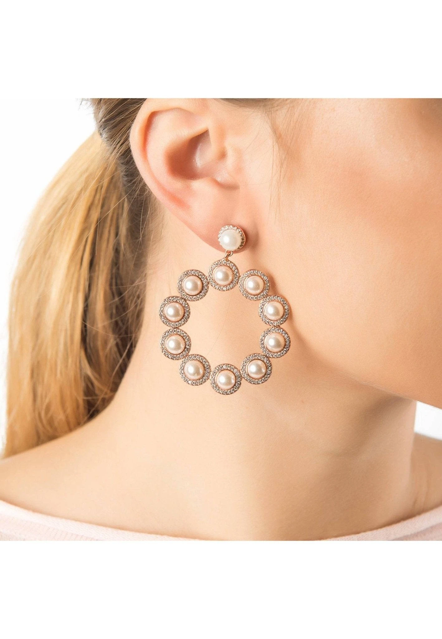 Latelita’s Gatsby Pearl Gemstone Statement EarringsĀ Silver are the perfect accessory to add a touch of glamour to your outfit. Inspired by the fashion of the roaring 20’s, the Gatsby earrings collection are an intricately designed front facing hoop earrings with natural pearls accented with zirconia gemstones. The chandelier drop earrings move with the wearer for added sparkle and become hypnotic with their dazzling effect as they catch the light from day to night.