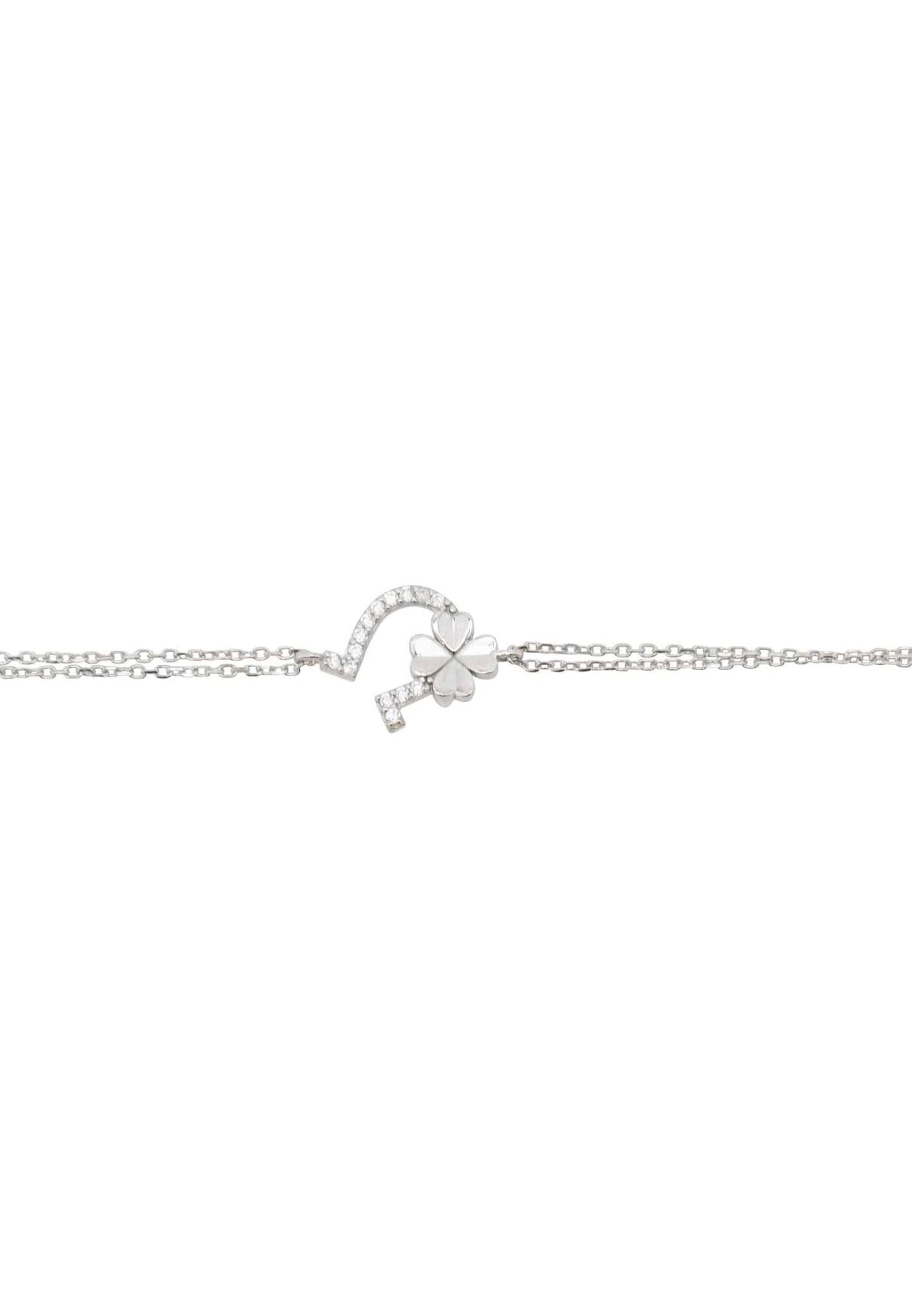 This simple yet chic, Horseshoe and Shamrock bracelet is perfect for everyday styling. Handcrafted in sterling silver, this bracelet features a double chain with the horseshoe & shamrock motif suspended at its centre. The horseshoe is adorned with zircons whilst the shamrock has been left in a highly polished metallic for added interest.