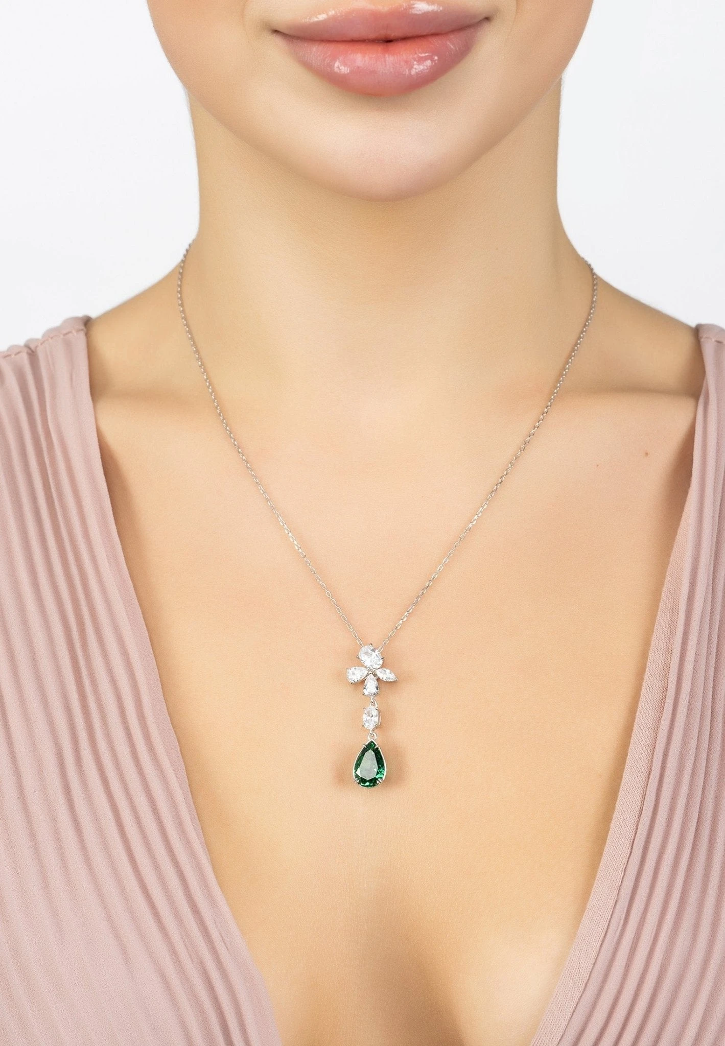 The Isabella Pendant Necklace Silver Peridot is a show-stopping piece that will add instant elegance and glamour to any outfit.