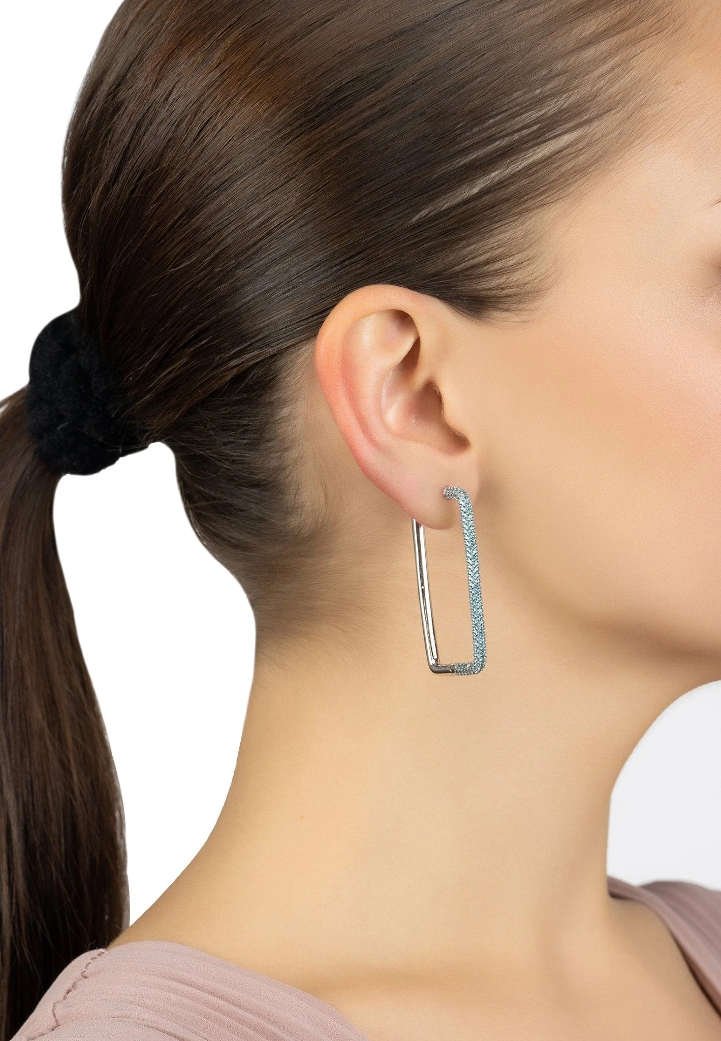 Looking for a fashionable and unique piece of jewellery that will make a statement? Look no further than these Large Link Hoop Earrings! Handcrafted from 925 sterling silver, these hollow hoop earrings are rectangular in shape and adorned with sparkling aqua blue cubic zirconia stones along the front aspect of these earrings, the rest of the hoop is left to a highly polished metallic finish.