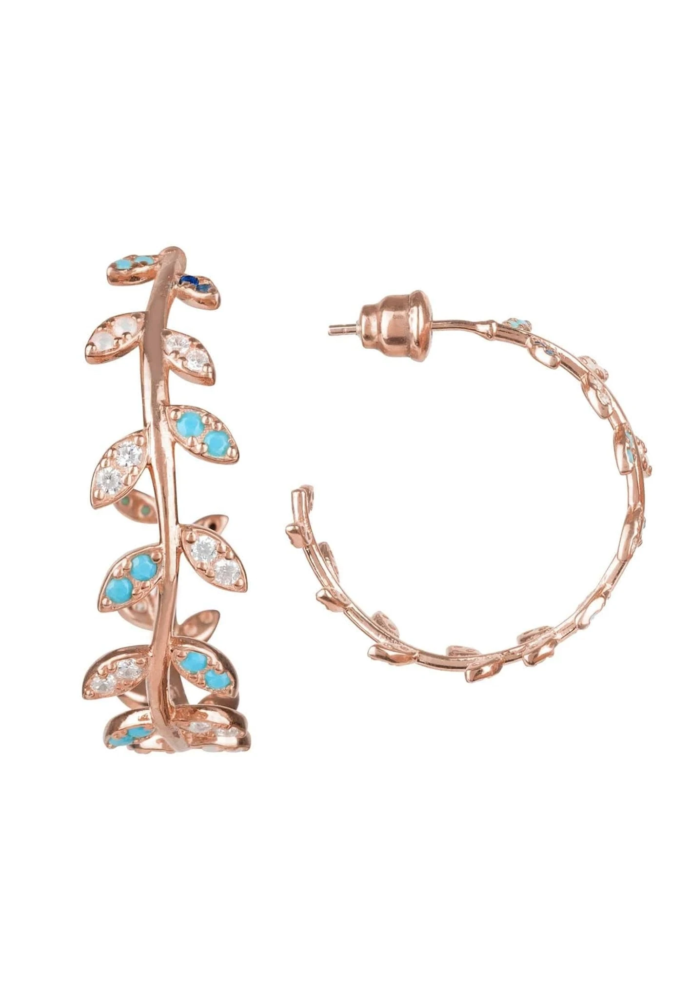 These nature inspired laurel leaf hoop earrings are romantic and chic.