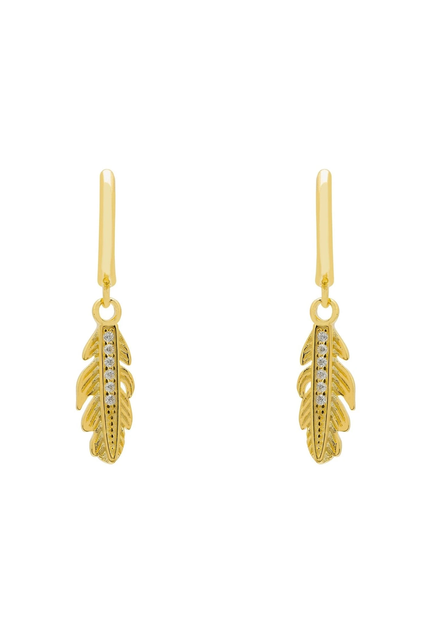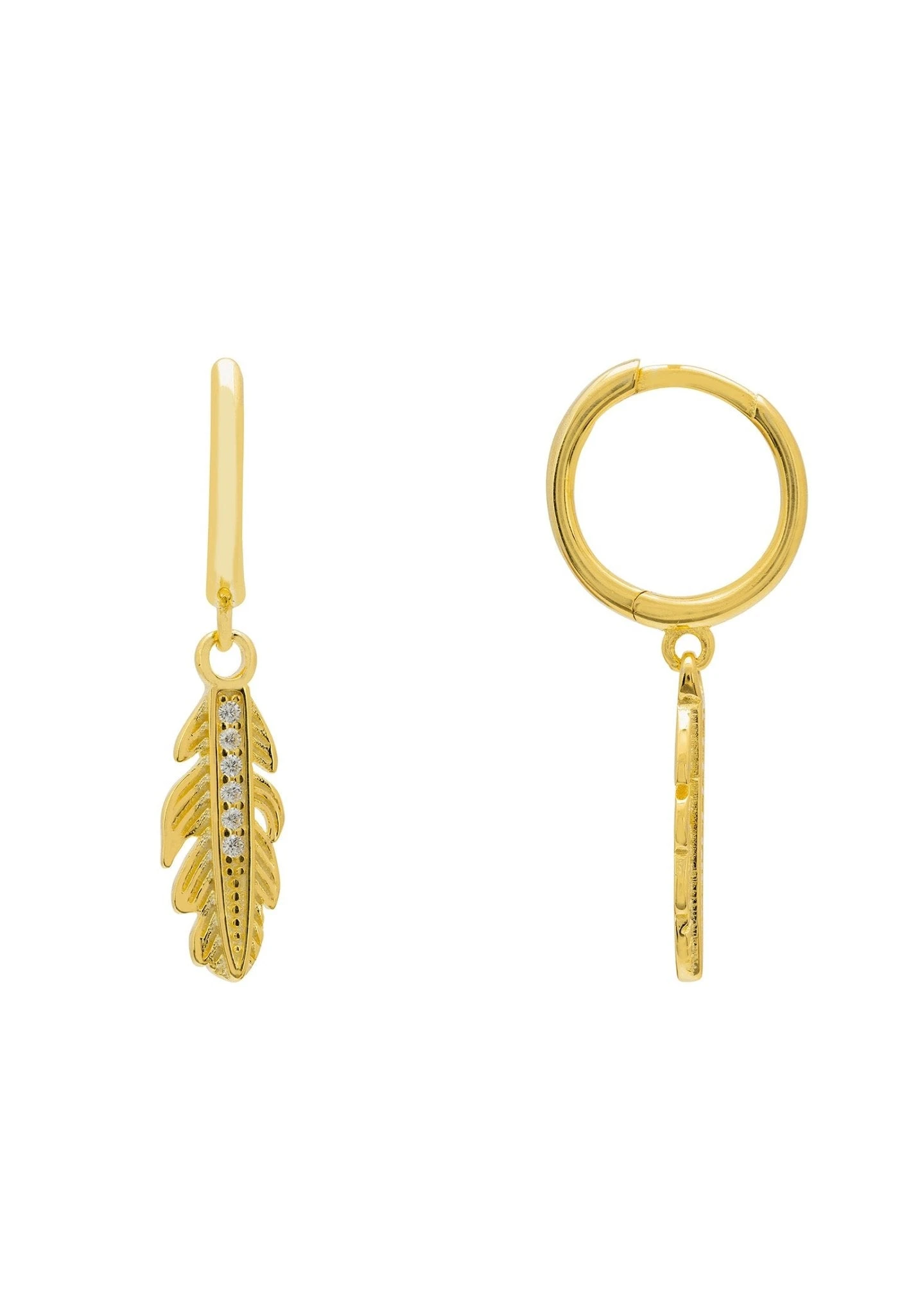 Add a touch of delicate beauty to your outfits with the Lucky Feather Huggie Hoop Earrings! These handcrafted earrings are made from 925 sterling silver dipped in 22ct gold, giving them a sleek and elegant look. A line of sparkling zirconia runs down the shaft of the feather, beautifully highlighting the design. For added comfort and convenience you can wear it all day long thanks to its lightweight 1.7 gram weight. These pretty earrings have an overall length of 2.5 cm and the hoop fixing has a diameter of 1.0 cm.
