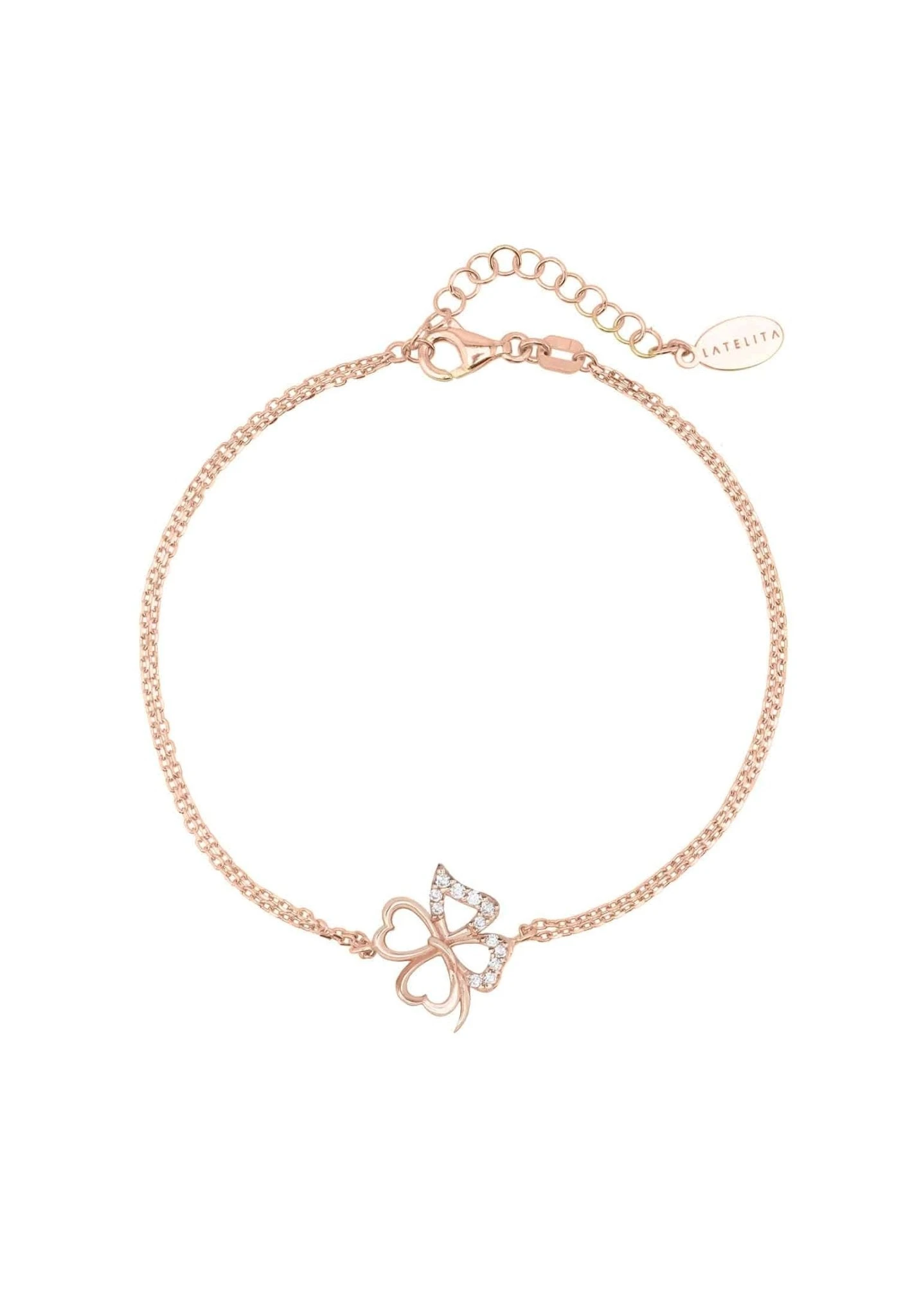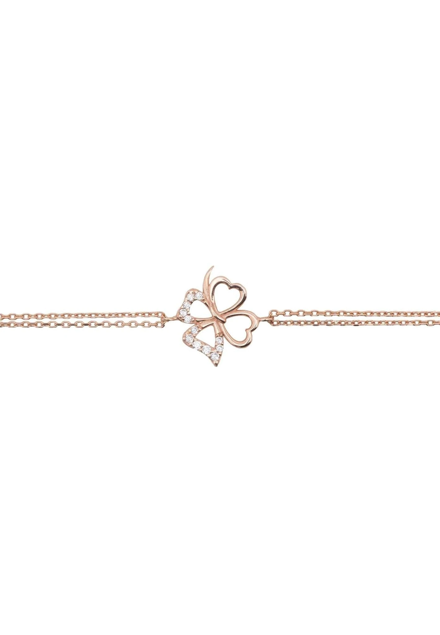 This beautifully chic, lucky Shamrock clover bracelet is perfect for everyday styling. Either worn singularly or layered for a more dramatic look. Handcrafted in sterling silver, each bracelet features a double chain supporting an open shamrock clover at its centre. Two of the four heart shaped leaves are adorned with sparkling zircons, whilst the other two remain plain.