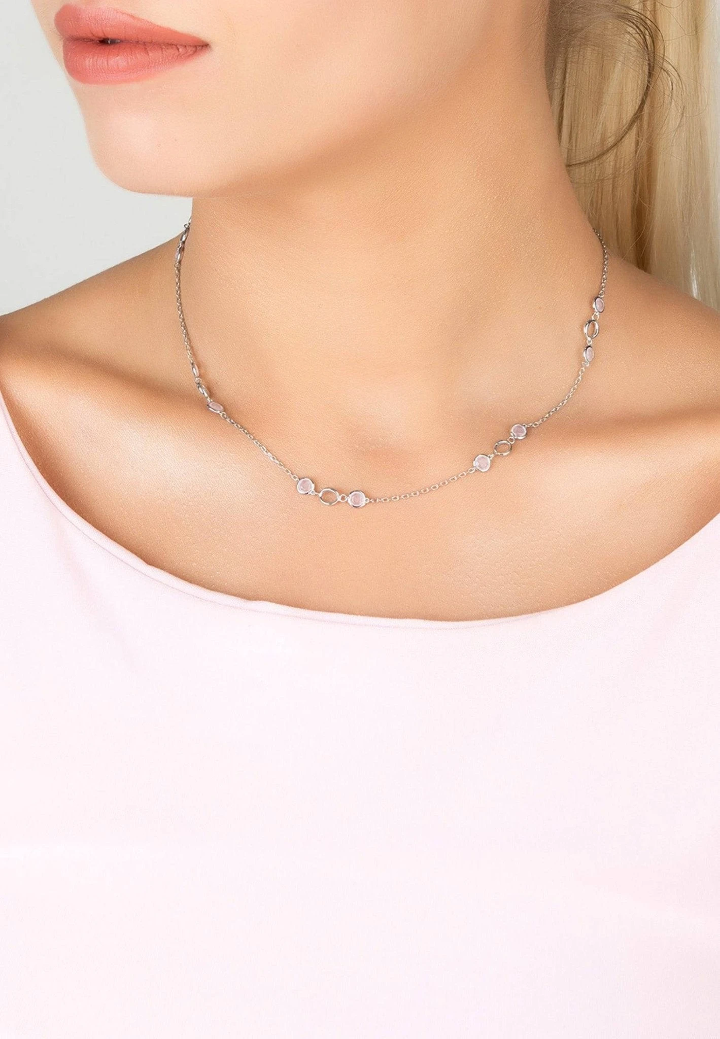 Let this Milan link gemstone necklace be your new wardrobe staple. Ideal for those who love delicate jewellery, this gemstone necklace features ten round cut gemstones spaced evenly on a fine chain in groups of three which incorporates a central hollow link.