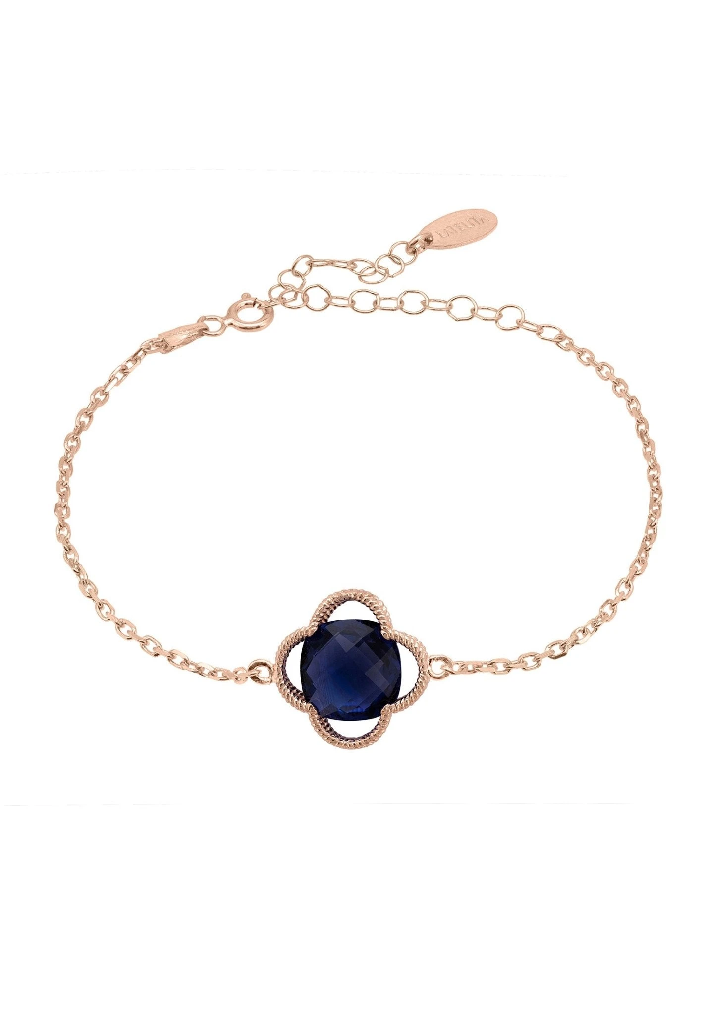 The bracelet is 15cm long with a 5cm length adjuster, making it the perfect size for any wrist. The gemstone and setting measure 1.5×1.5cm and the bracelet weighs 2.5 grams, perfect to wear all day long without feeling weighed down.