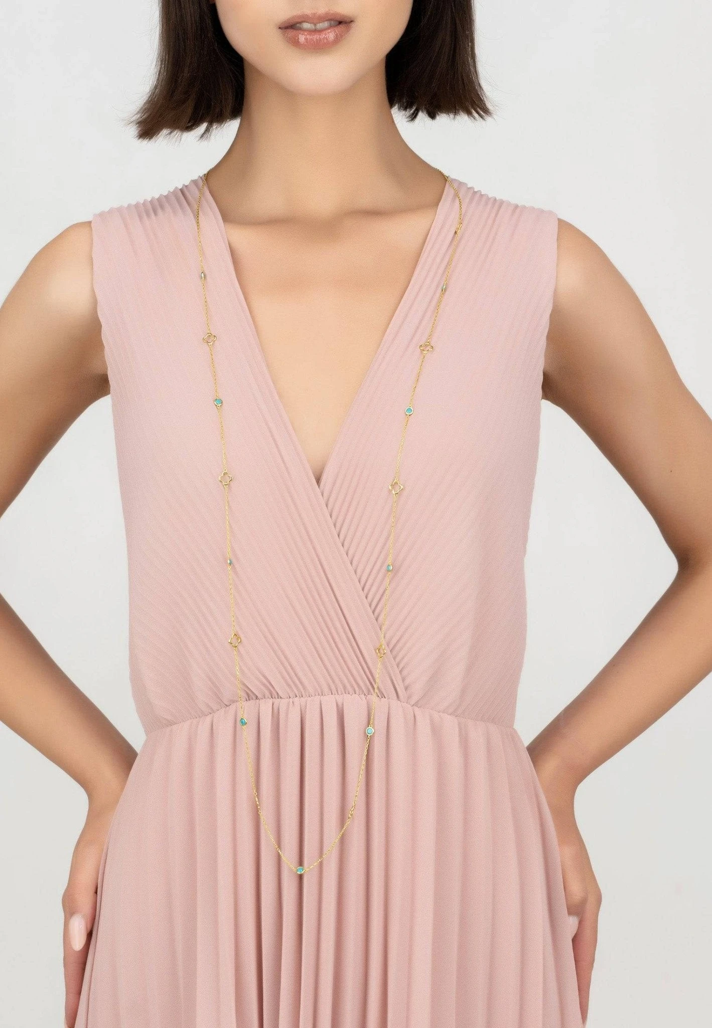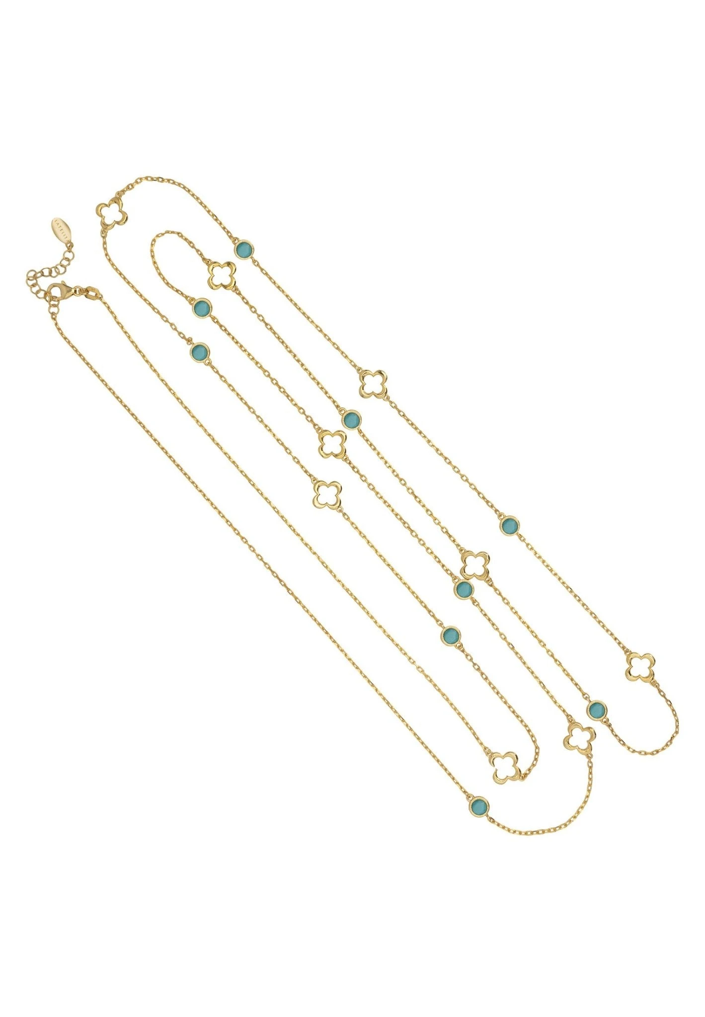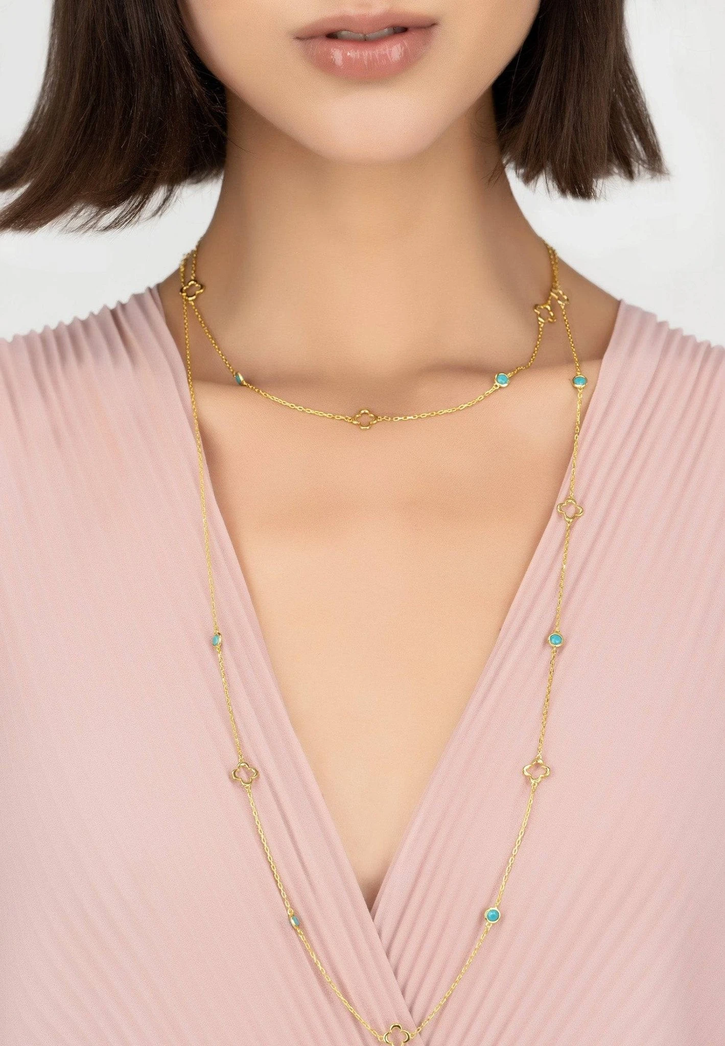 Let this necklace be your new wardrobe staple. Ideal for those who love delicate jewellery, this gemstone necklace features an open clover design alternating with gemstones set along a long chain.