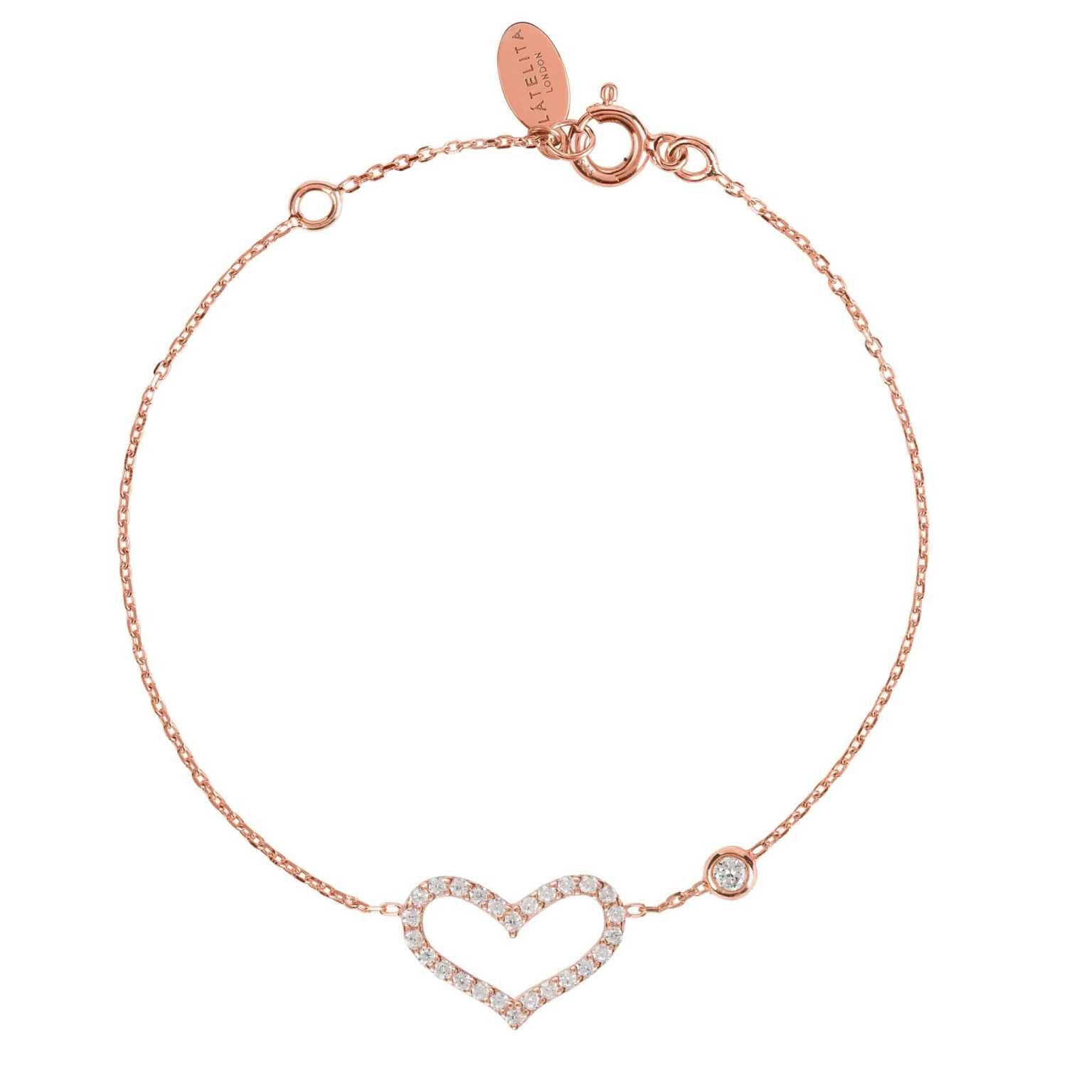 This simple yet chic, open heart bracelet is perfect for everyday styling. Either worn singularly or layered for a more dramatic look.