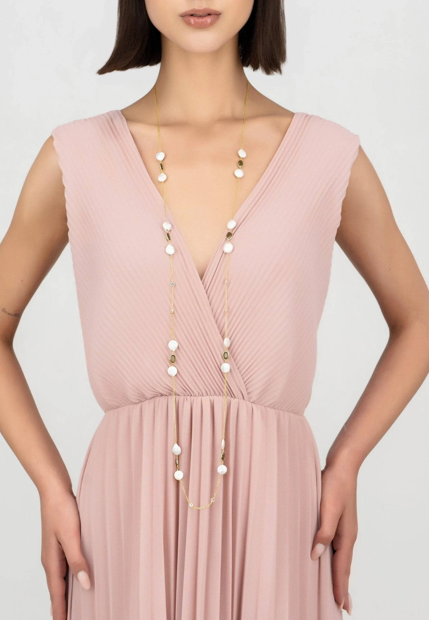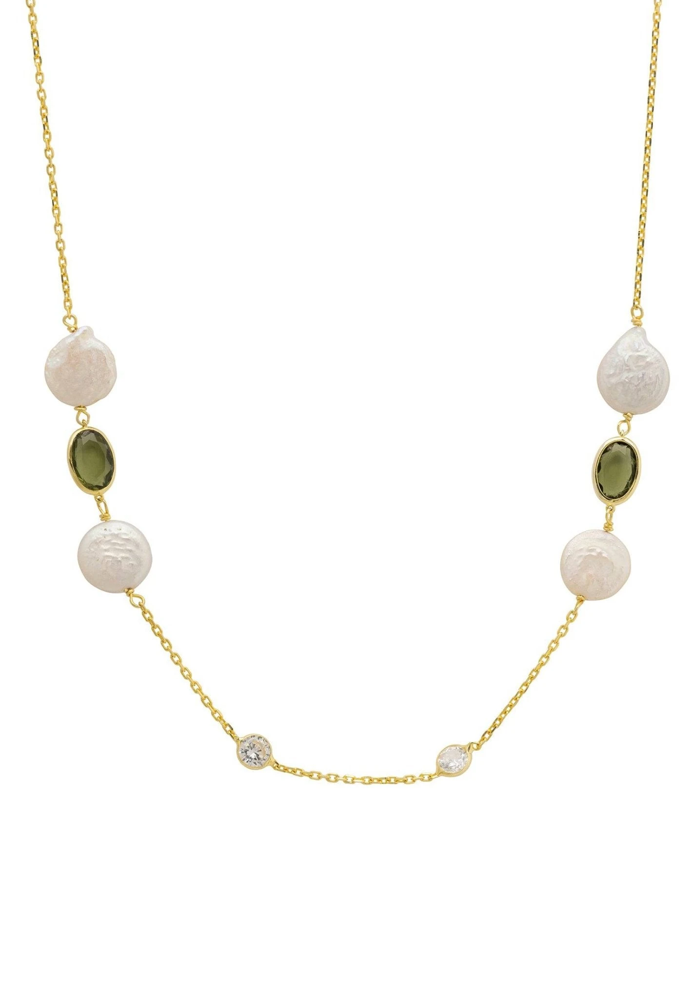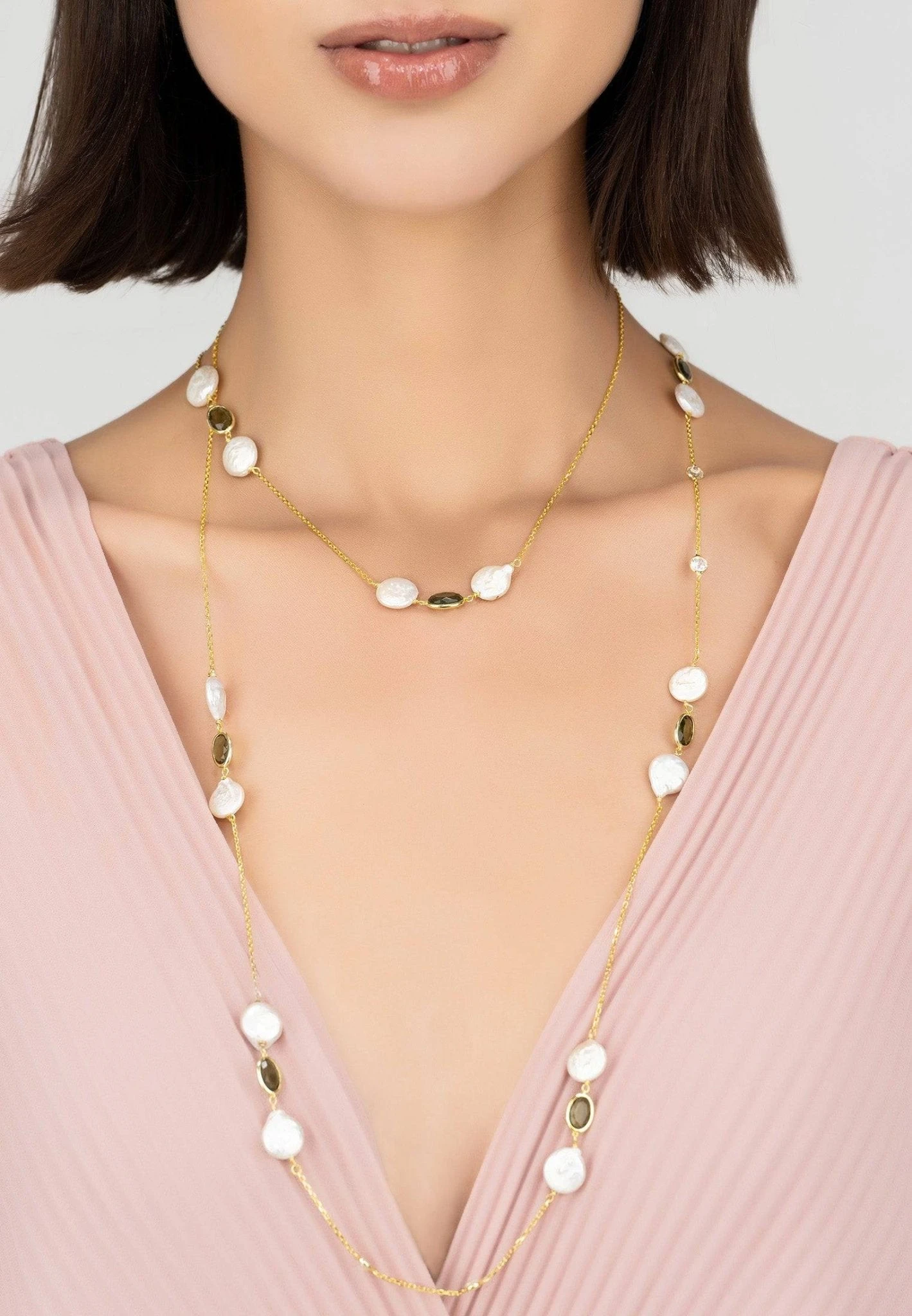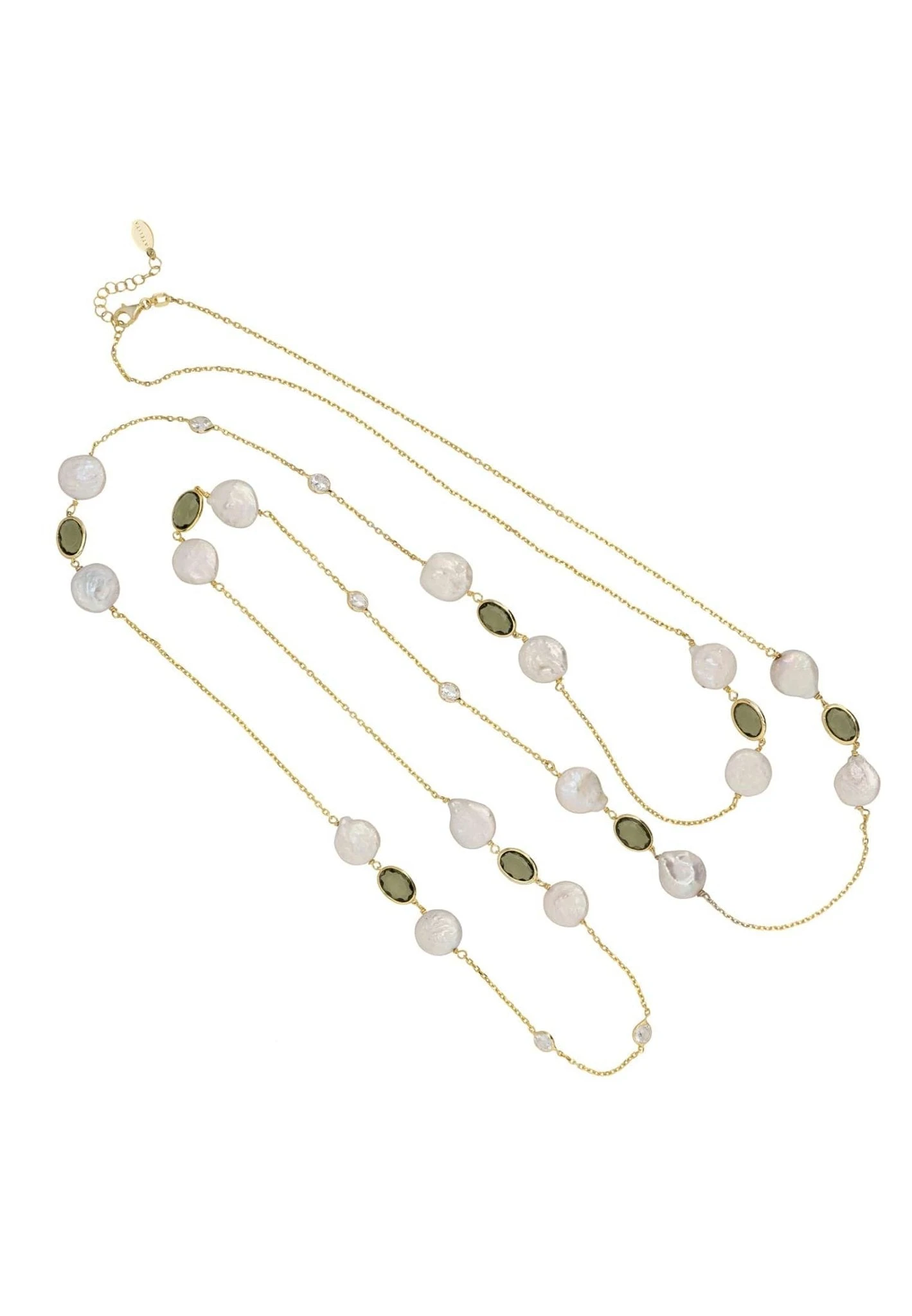 Let the Pavia necklace be your new wardrobe staple. Ideal for those who love delicate jewellery, this gemstone necklace features pearls and round cut cabochons, set in groups of three and spaced evenly along 120cm of fine chain.