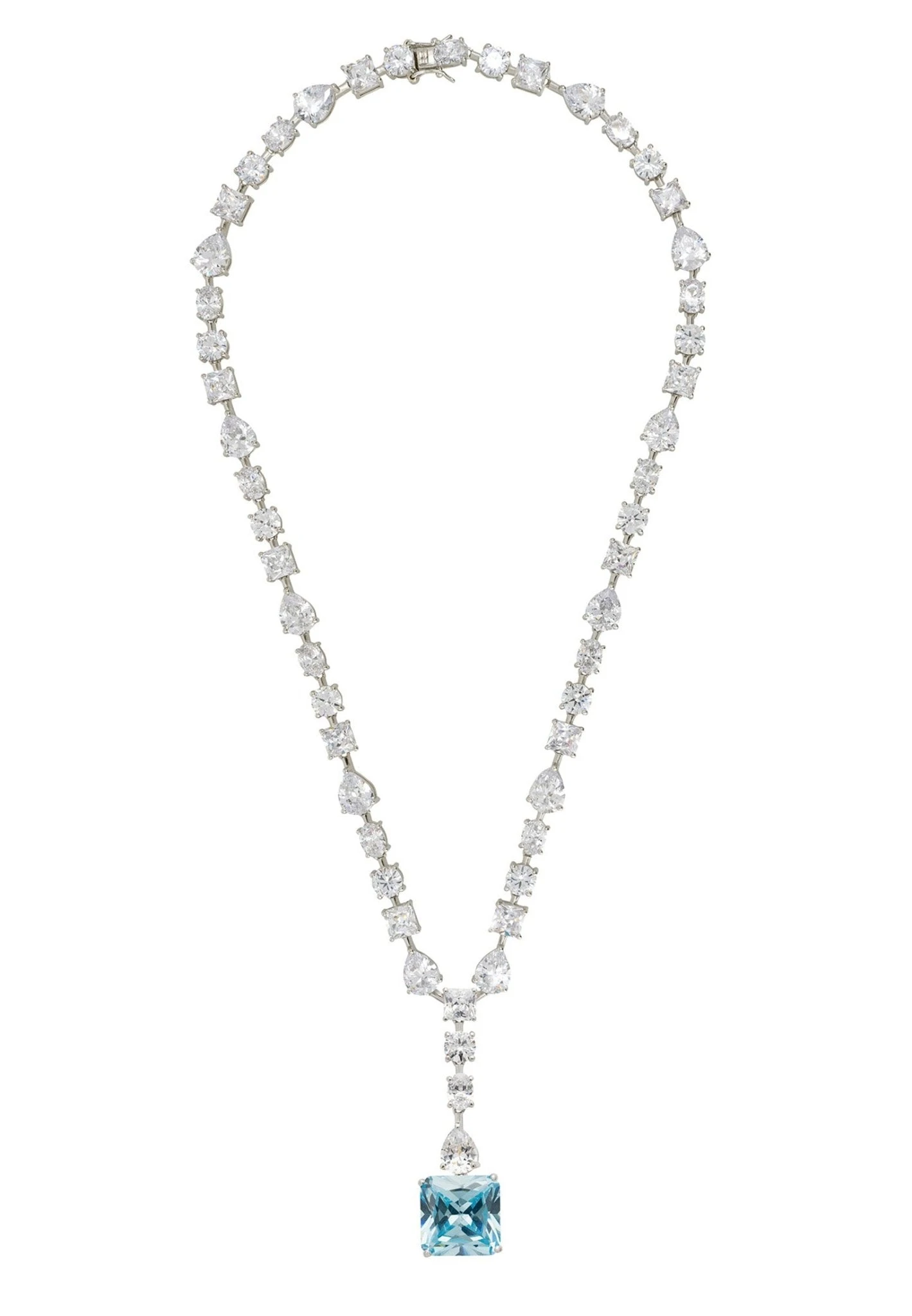 Let the light shine with the Penelope Blue Topaz Statement Necklace Silver. Crafted from 925 sterling silver, this piece is as precious as they come and guaranteed to make a lasting impression. Featuring a square shaped lab-created gemstone set off by dazzling simulated diamonds, this necklace is perfect when you want to make an understated yet glamorous statement.