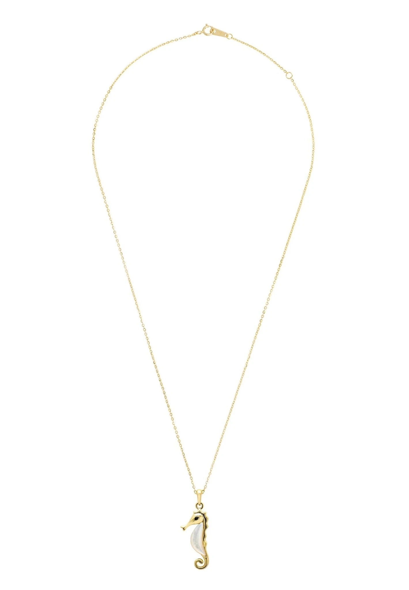 Each piece features a beautiful gold setting in the image of a playful seahorse with a length of 2.0cm, its body is set with a teardrop shaped mother of pearl. The highly polished metal bail gives the pendant more freedom to move along the length of chain, which has an adjustable length between 42 to 46 cm. As if that wasn’t enough, the piece also has an incredibly dainty weight, coming in at only 1.4 grams!Â