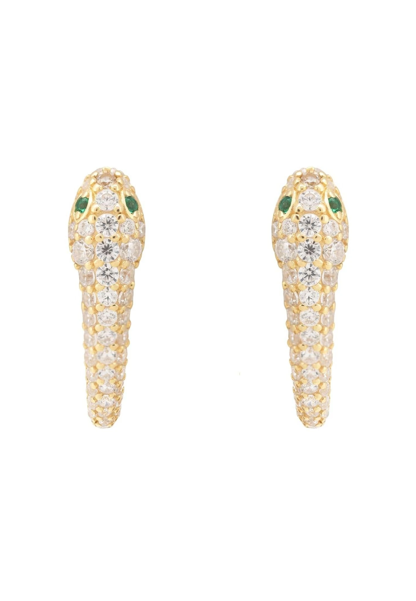 925 sterling silver dipped in 22ct gold. White zircons green zircon eyes.