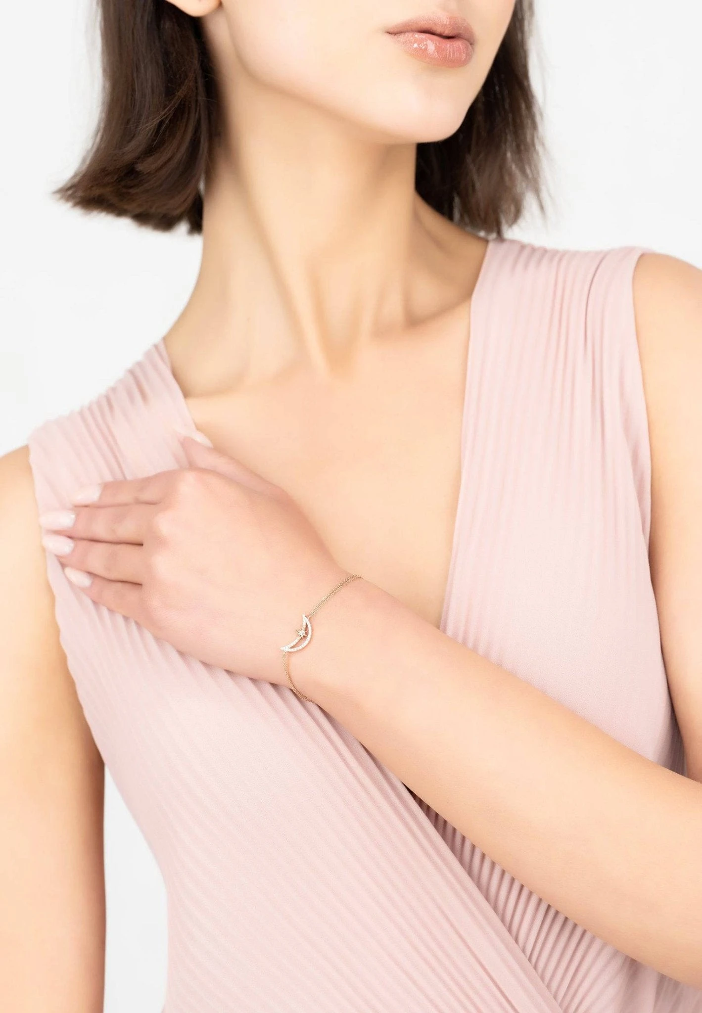 This simple yet chic, crescent moon and star bracelet is perfect for everyday styling. The open crescent moon motif is outlined using Latelita London white zircons to provide dazzling sparkle from day to night. Either worn singularly or layered for a more dramatic look.
