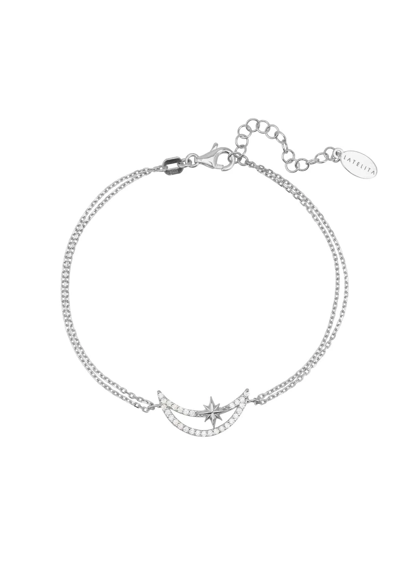This simple yet chic, crescent moon and star bracelet is perfect for everyday styling. The open crescent moon motif is outlined using Latelita London white zircons to provide dazzling sparkle from day to night. Either worn singularly or layered for a more dramatic look.