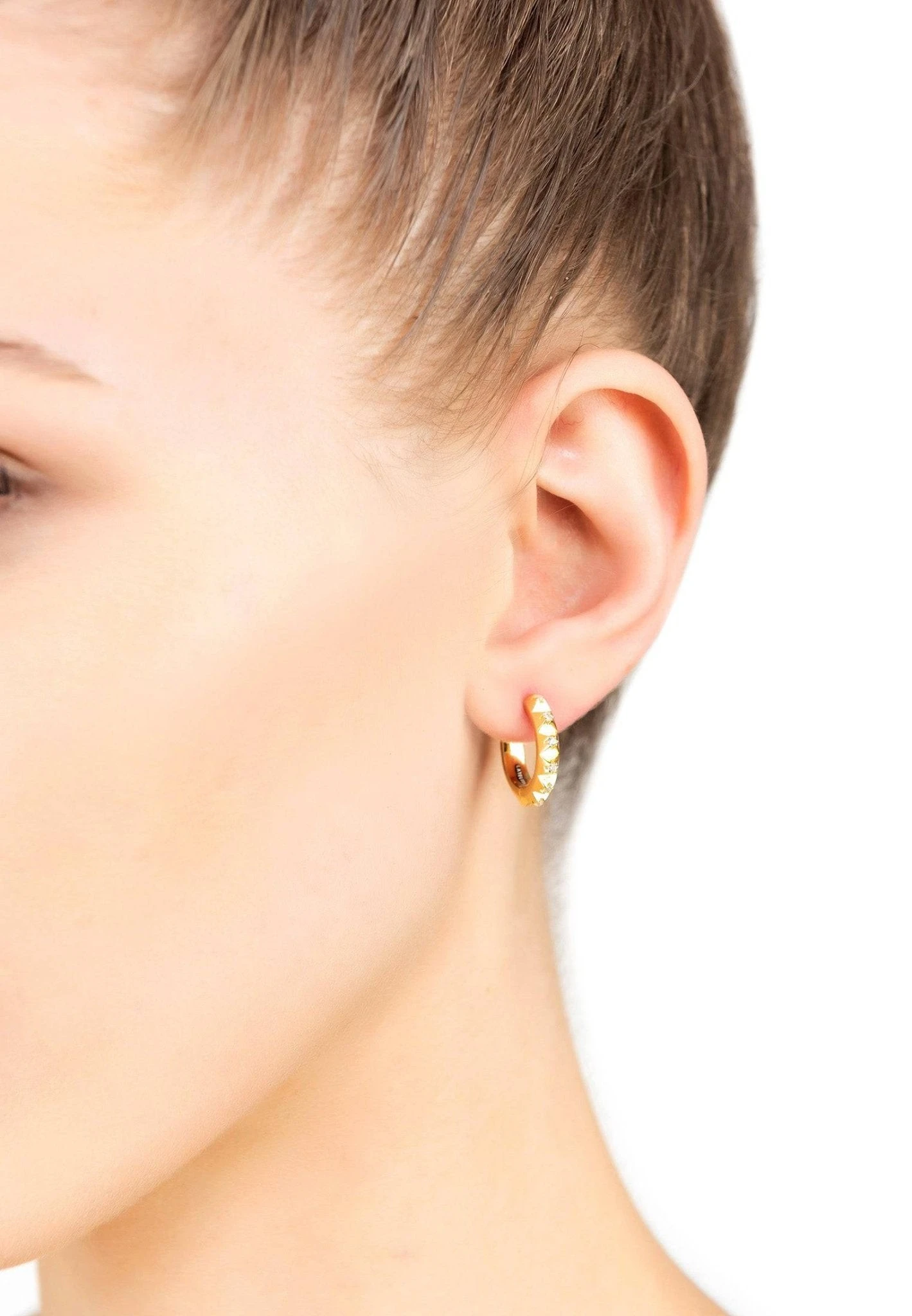 The spikey hoop earrings will add a dash of edginess to an otherwise conservative look.