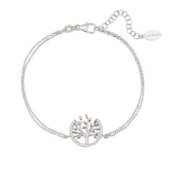This meticulously crafted and beautifully styled tree of lifeĀ bracelet sparkles with zirconia. The delicate tree of life motif sits inside an open topped circle andĀ is attached either side to a fine double chain. Perfect for everyday styling. This bracelet looks great worn singularly or layered for a more dramatic look.