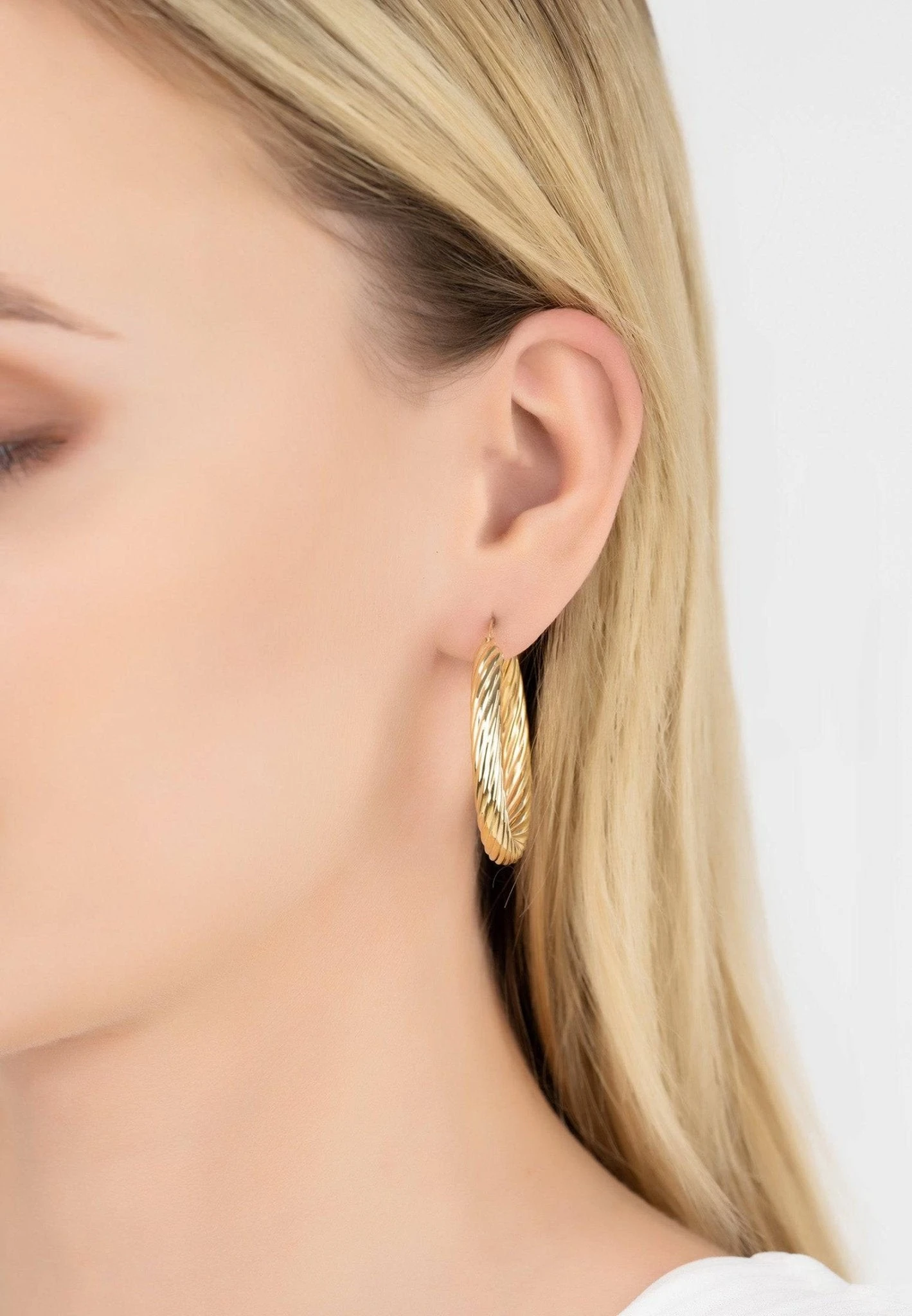 The twisted creole hoop earrings will add a dash of edginess to an otherwise conservative look.