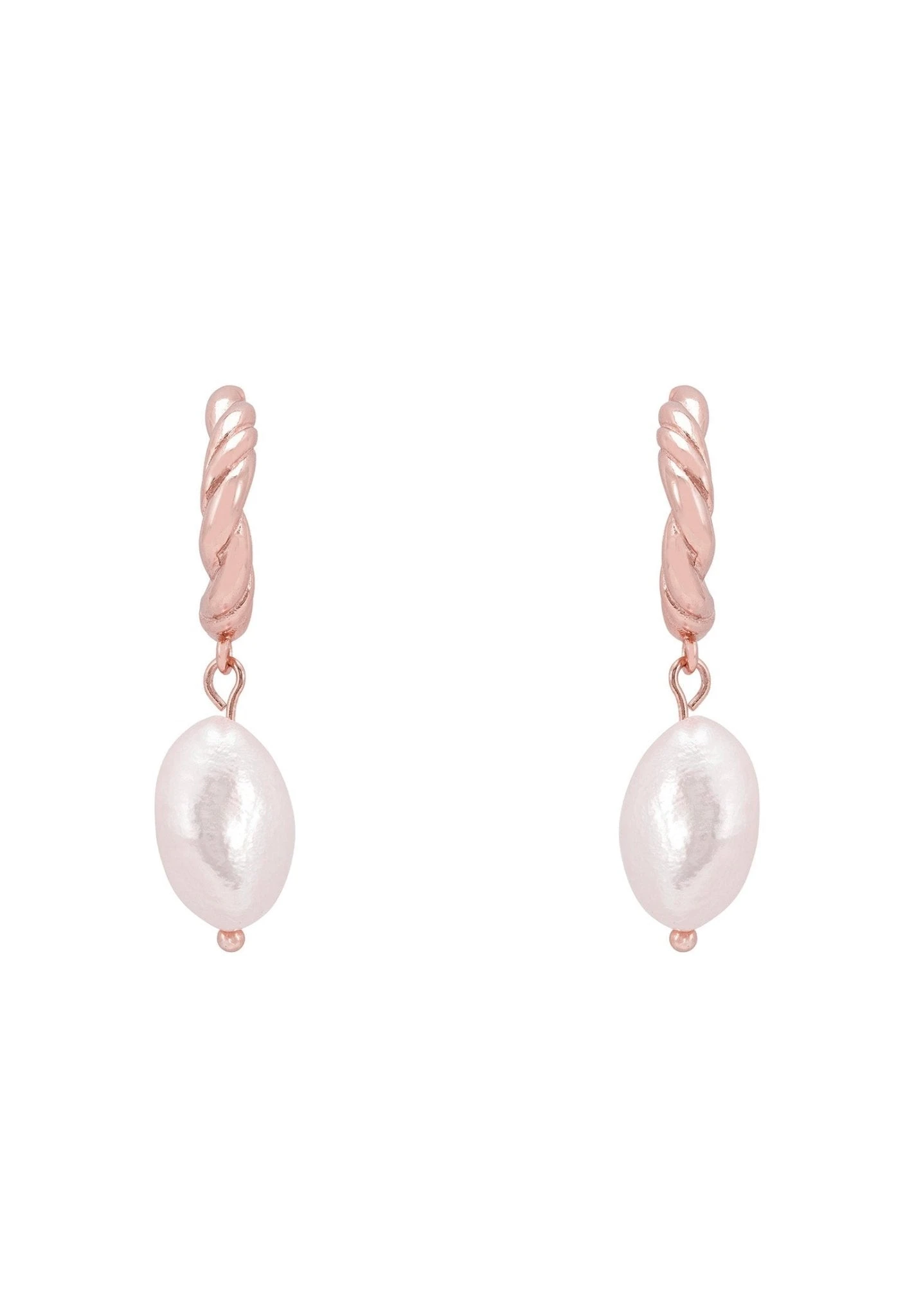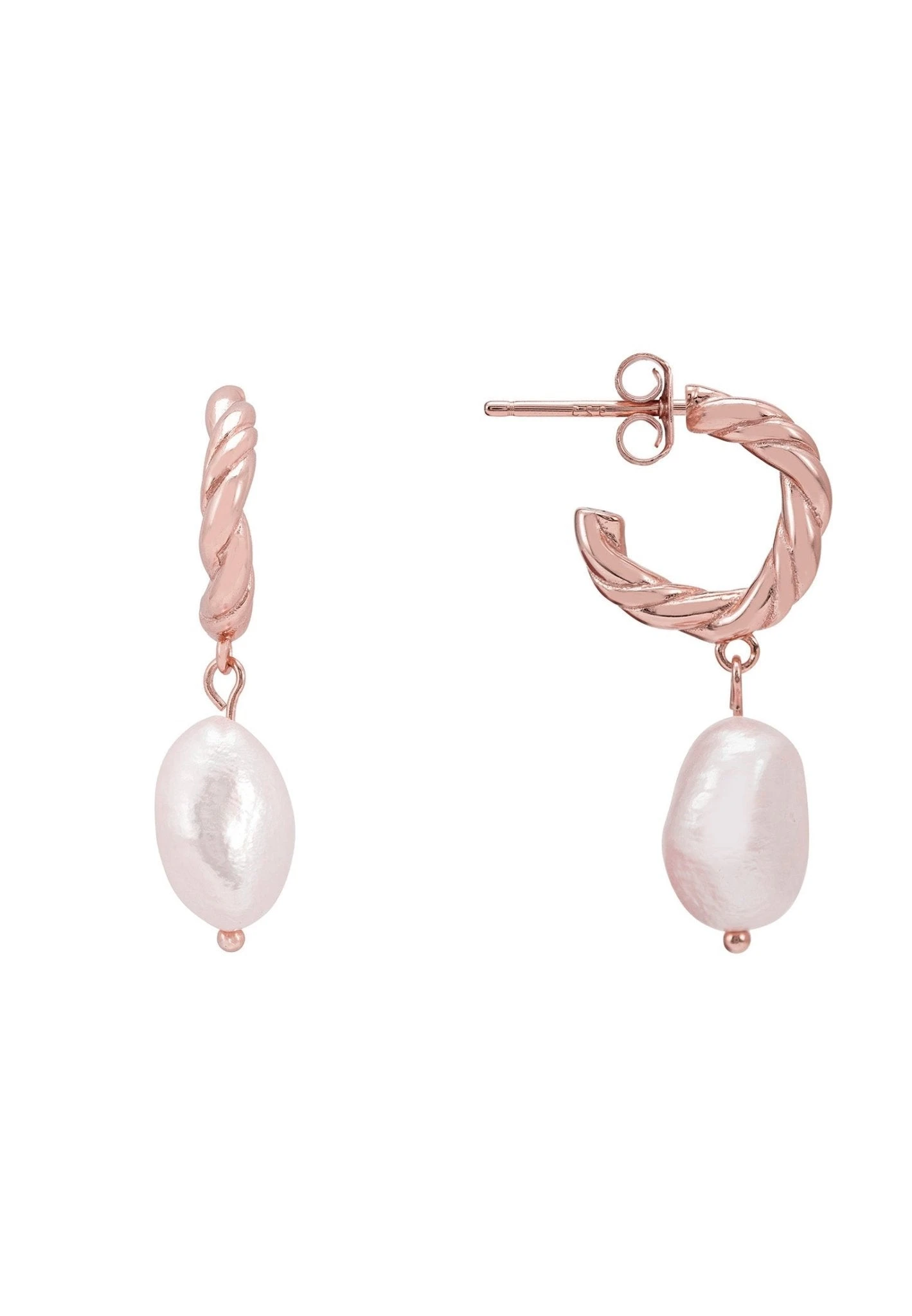 These 925 sterling silver earrings are dipped in 22ct rosegold and feature a small pearl suspended beneath the hoop. They are both stylish and on trend, and make an elegant addition to any outfit.