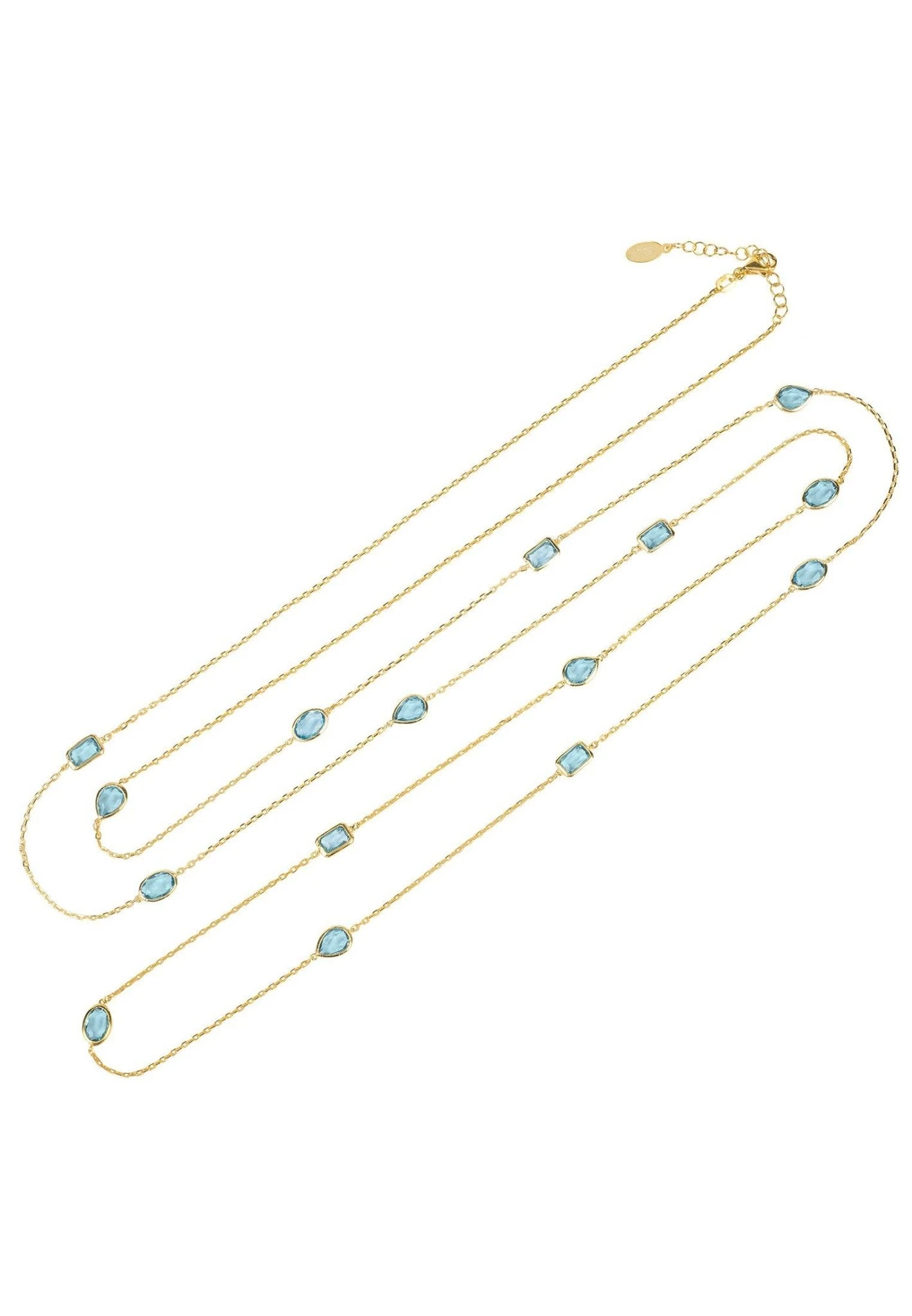 Let the Venice necklace be your new wardrobe staple. Ideal for those who love delicate jewellery, this gemstone necklace features 12 oval, rectangular and teardrop cut cabochons spaced on 120cm of fine chain.