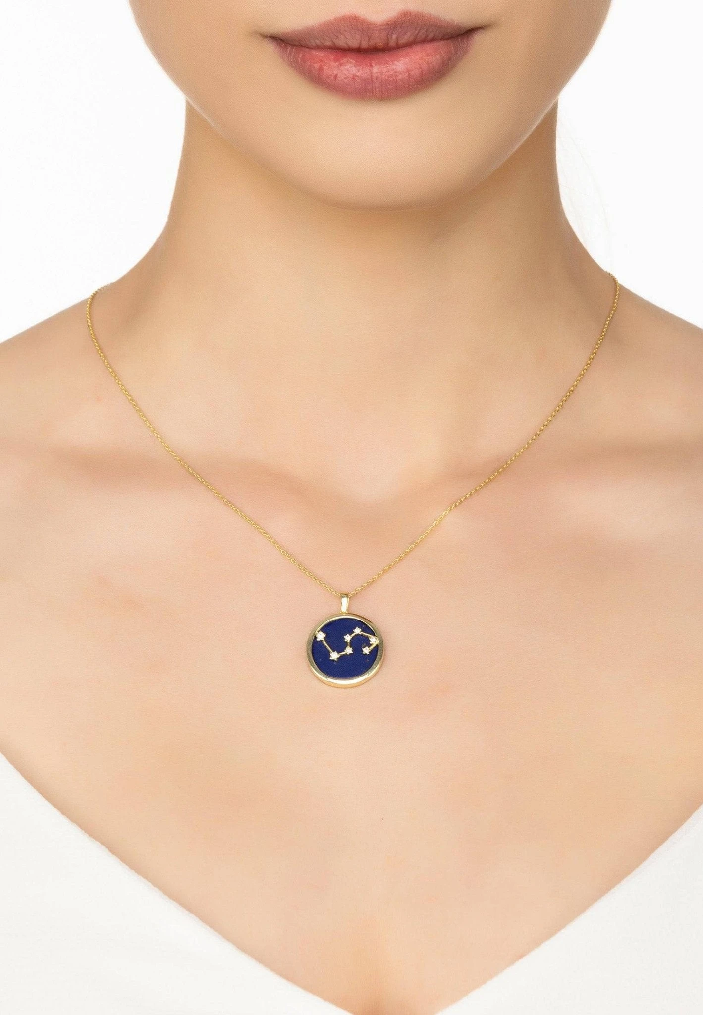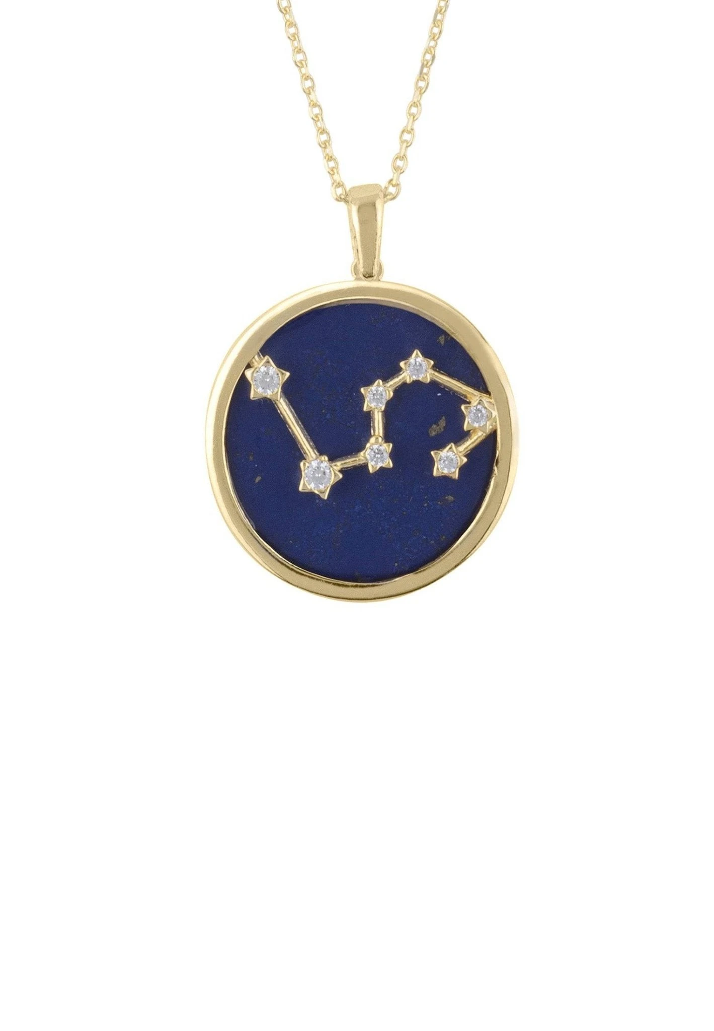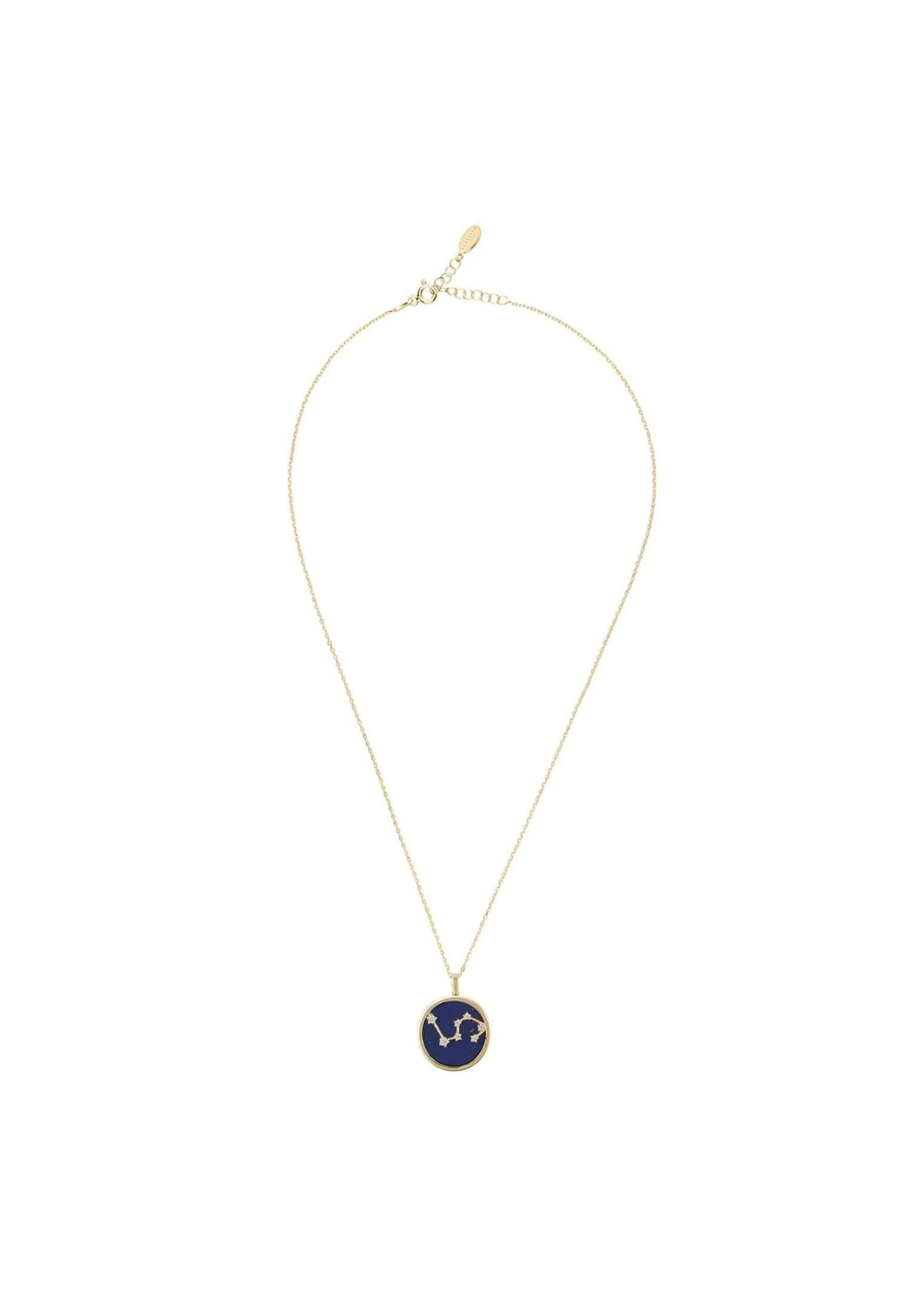 Carefully crafted from gold-dipped 925 sterling silver, this necklace features a disk of lapis adorned with white cubic zirconia, in the symbol of your star sign, for an enchanting touch. Its strong and lightweight design (5.3 grams) ensures your necklace won’t get in the way, and its adjustable chain (40 to 45cm) allows you to wear it long or short. Rep your sign in ultimate style! Get ready for compliments on this eye-catching piece whenever you don it – secure yours today!