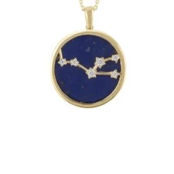 Make a beautiful statement with the stunning Zodiac Lapis Lazuli Gemstone Necklace, perfect for any modern fashionista. Boasting natural lapis lazuli for a deep blue twinkle that’s as wondrous as the night sky, this necklace is encased in gold-dipped 925 sterling silver with handset white cubic zirconia detailing. The gold reverse of the pendant features cut-out stars where the lapis lazuli peeps through and your astrological sign’s unique name engraved on it.