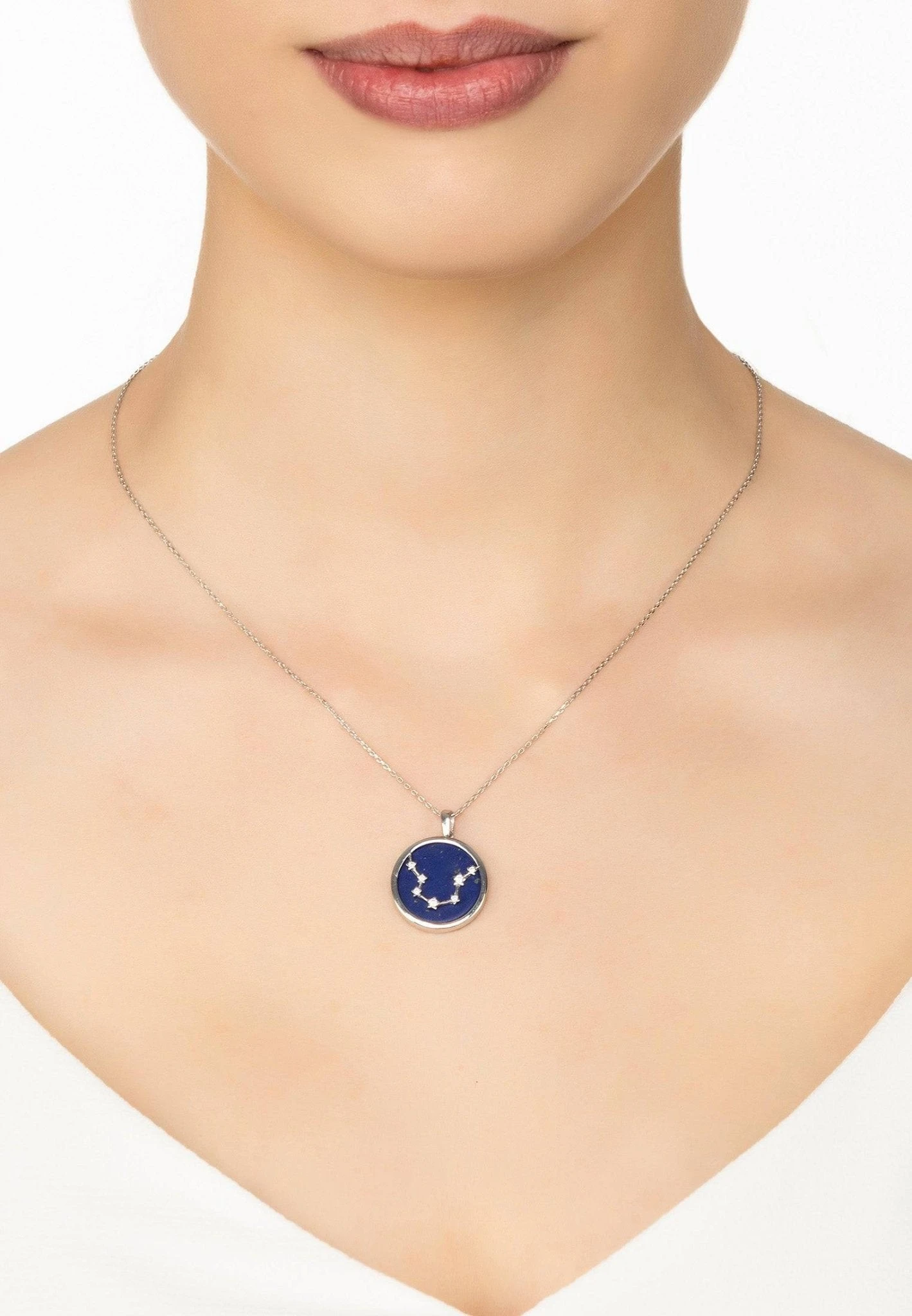 Capturing the mysterious beauty of the night sky, this Zodiac Lapis Lazuli Gemstone Star Constellation Pendant Necklace will make you feel like a star! The natural beauty of dark blue lapis lazuli, as wondrous as the sky at night, makes the perfect backdrop to the twinkling constellation of stars on each pendant. Engraved with your star sign name and detailed with cut-out stars on the reverse, this pendant is sure to add a touch of starlit elegance wherever you go.