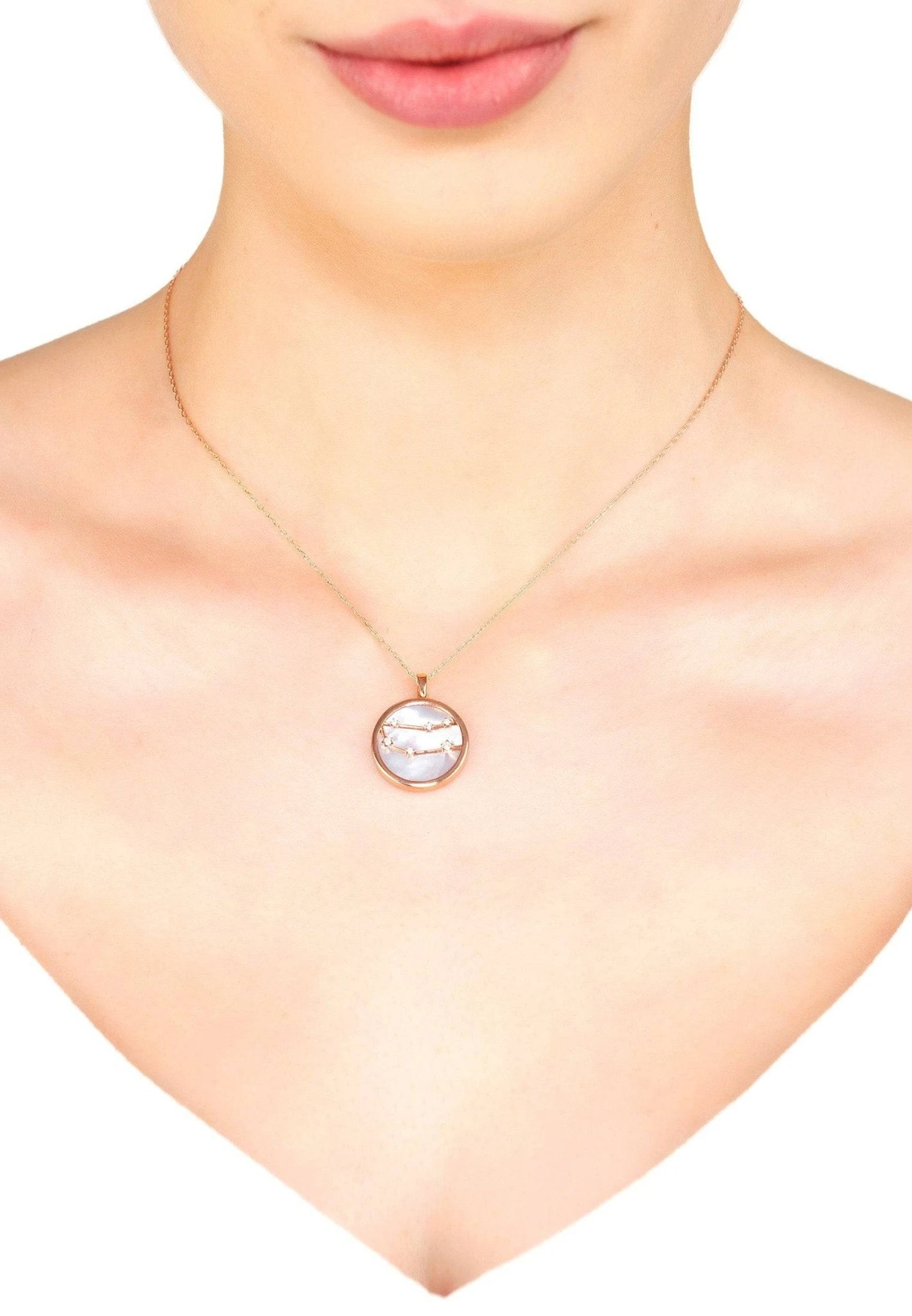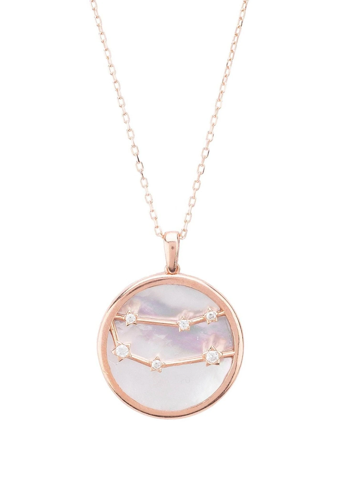 The natural beauty of white mother of pearl makes the perfect back drop to the sparkling star constellation in this zodiac pendant necklace. The reverse of this pendant is equally as beautiful, featuring cut-out stars with the soothing properties of mother of pearl gently peeping through and the engraved name of your star sign.