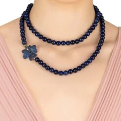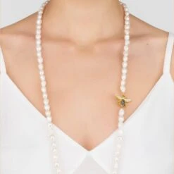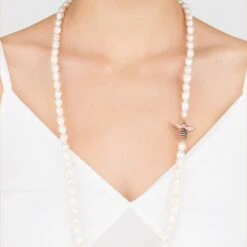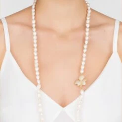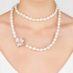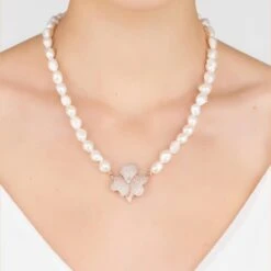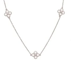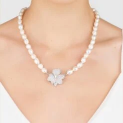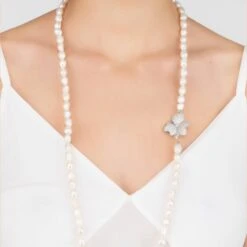 Latelita Flower Pearl Gemstone Long Necklace White Cz Silver