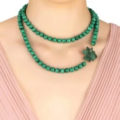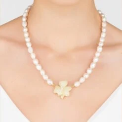 Latelita Flower Clover Long Chain White Quartz Necklace Gold