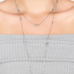 Latelita Venice 120Cm Long Chain Necklace Silver Rose Quartz