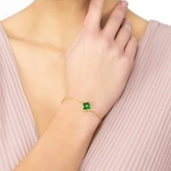 Latelita Open Clover Flower Gemstone Bracelet Gold Blue Topaz