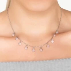 Latelita Florence Round Gemstone Necklace Silver Rose Quartz