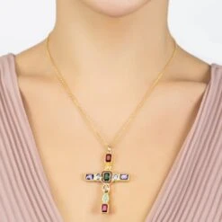 Latelita Santa Maria Extra Large Gemstone Cross Pendant Gold