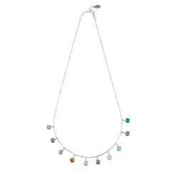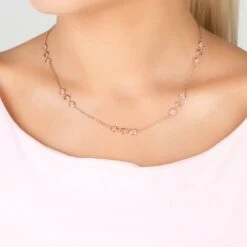 Latelita Florence Round Gemstone Necklace Silver Rose Quartz