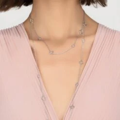 Latelita Venice 120Cm Long Chain Necklace Silver Rose Quartz